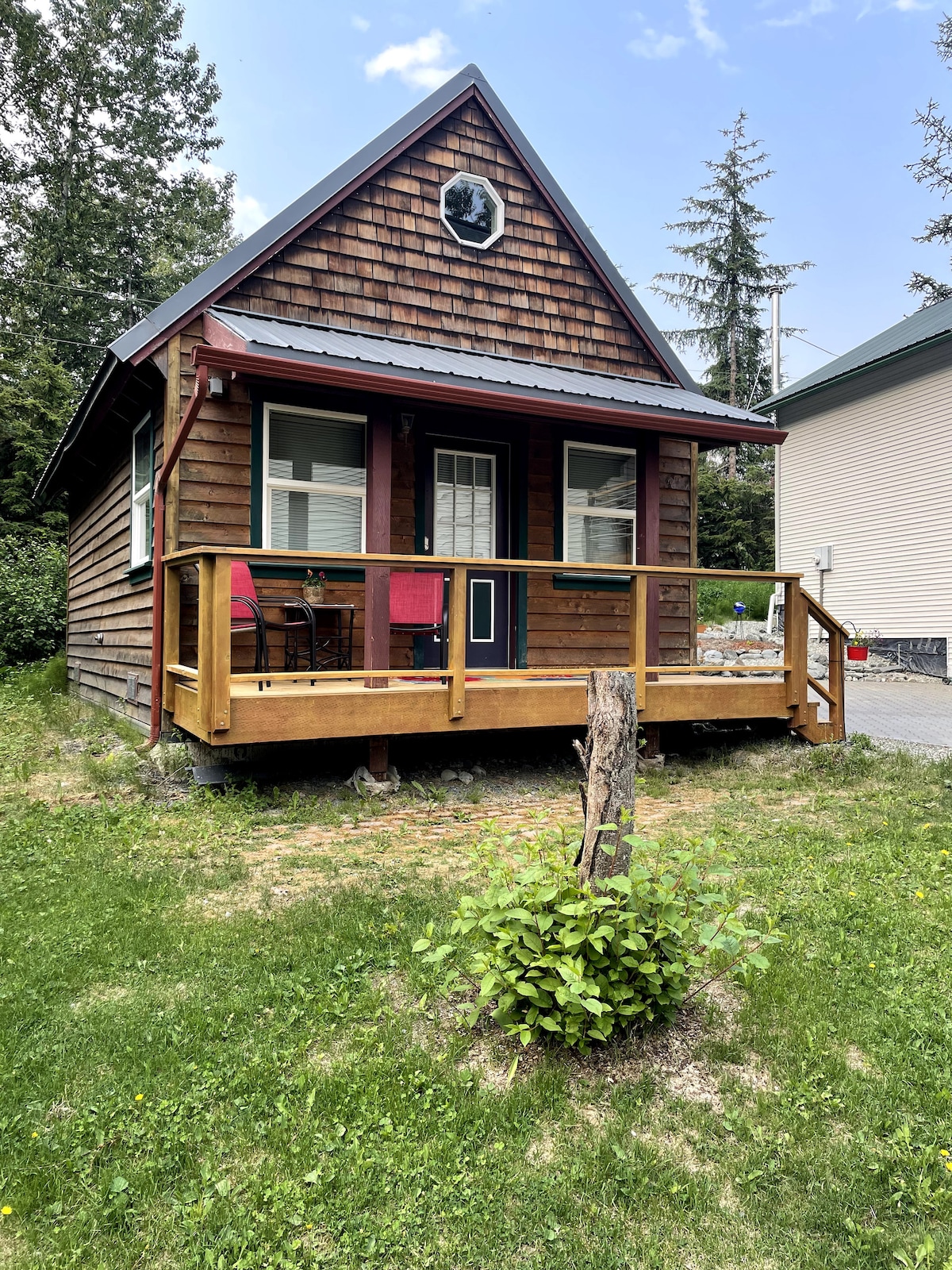 Насолоджуйтеся нашим новим затишним зрубом із 2 спальнями, розташованим у тихому районі Гуд-Рівер і всього в 8 милях від національного парку Глейшер-Бей. Помешкання розташоване на лісовій ділянці з стежками поблизу та досить близько, щоб їздити на велосипеді в будь-яку точку міста. Зруб має два ліжка розміру Queen size, повністю обладнану кухню, вітальню, ванну кімнату та пральну машину/сушильну машину. Включено інгредієнти для сніданку з млинцями та домашнім сиропом Spruce Tip. Також доступні безкоштовні велосипеди, барбекю та портативний камін.