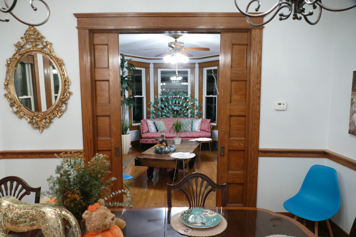 Цей чудово доглянутий 90-річний будинок пропонує оновлене життя з оригінальним шармом - від повністю перероблених ванних кімнат/ пральні до оригінальної підлоги з твердих порід дерева. Насолоджуйтеся великою основною спальнею з окремою ванною кімнатою всього в декількох кроках від спа-салону з гідромасажною ванною на сім осіб! Ви насолоджуватиметеся барбекю, затінком під альтанкою, змагання з більярдом і вечорами біля чаші для багаття в цьому огородженому дворі 3/4. Забронюйте помешкання сьогодні!
