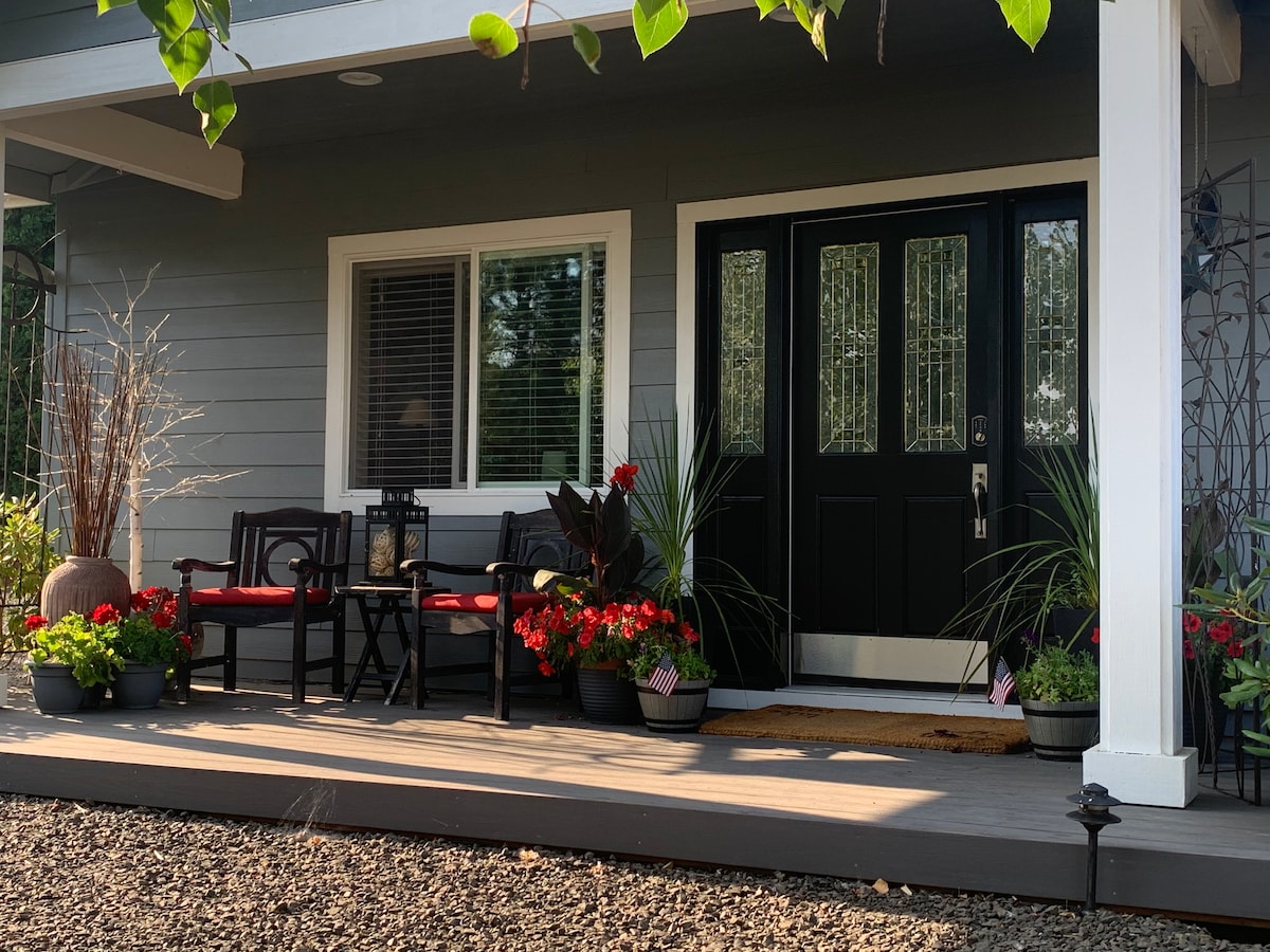 Насолоджуйтеся перебуванням у стильній, тихой і надзвичайно комфортній квартирі з 1 ліжком/1 ванною кімнатою з власною кухнею та окремою пральнею. З цього помешкання на набережній відкривається прекрасний територіальний краєвид. Розташований в одному з найпопулярніших районів району. Окремий вхід із дверним кодом. Самостійне прибуття. Необхідно підніматися сходами. 3 хвилини до селища Північного Олбані та стодоли (Starbucks, ресторани, продуктовий магазин). 15 хвилин до Корвалліса та I-5. 20 хвилин до кампуса штату Орегон (приблизно 9 миль)