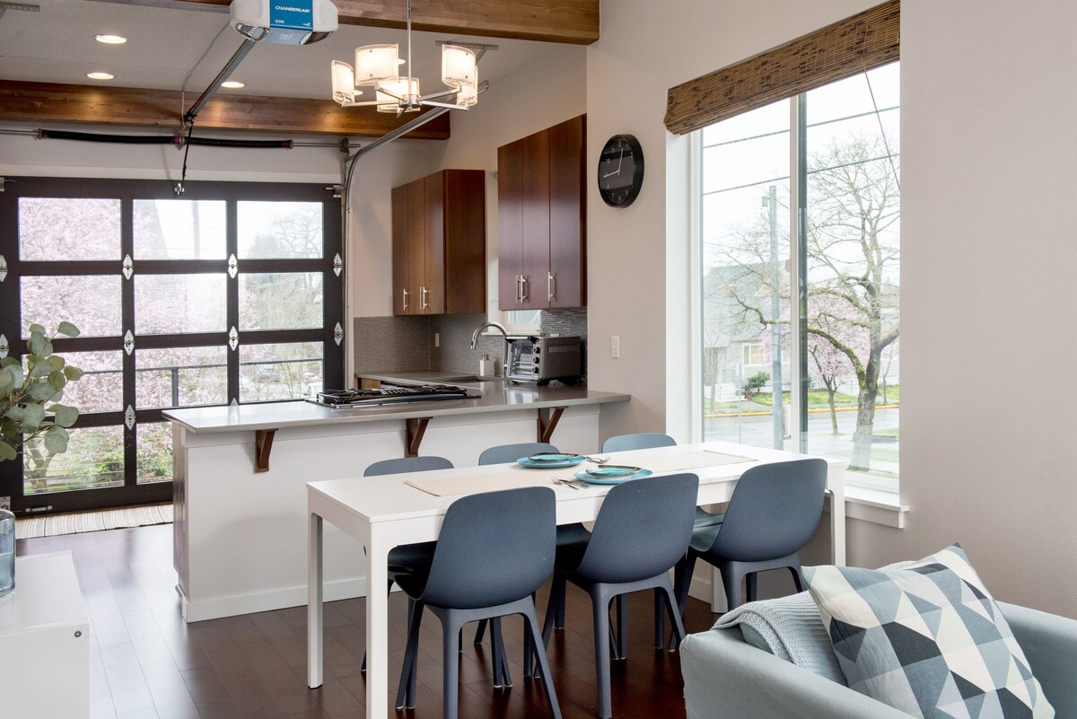 Відпочиньте в чарівному гостьовому будинку в районі Alberta Arts District у Портленді, де є безліч закладів харчування, муралів, кав’ярень, барів, галерей та унікальних магазинів. Відпочиньте у власному помешканні, обладнаному двоспальним ліжком, розкладним диваном, повністю обладнаною кухнею та затишним відкритим простором. Помешкання розташоване на задньому дворі, окремо від головного будинку, що забезпечує максимальну конфіденційність і спокій. Відпочиньте та розслабтеся з усім необхідним для вашого перебування в Портленді.
