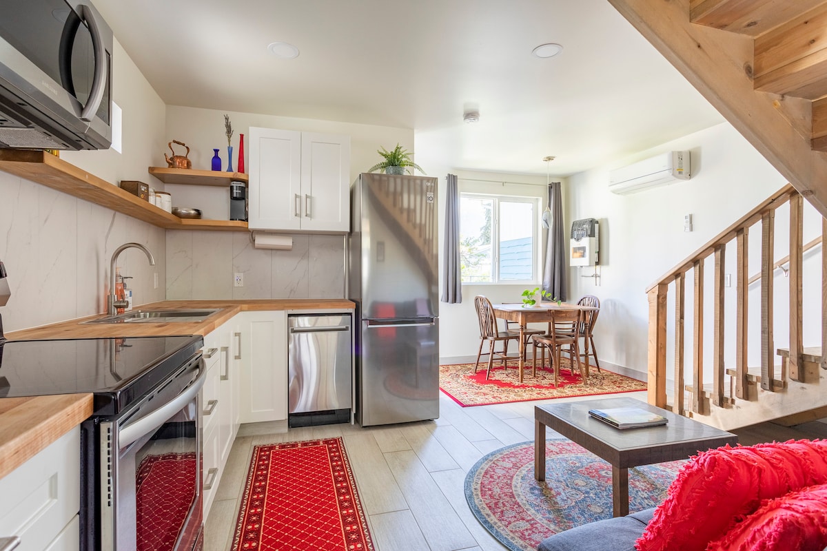 Enjoy a stylish experience in this bright and open carriage house located in a very desirable part of the city. Close to restaurants, shopping, downtown, the Saddledome, Mount Royal University, and much more! The architect-designed suite is one of a kind and full of character and natural light. Relax with a coffee or a glass of wine on the covered private balcony or take a short walk to Marda Loop, one of Calgary's premier dining destinations! Max occupancy is 2 adults & 1 child under 12.