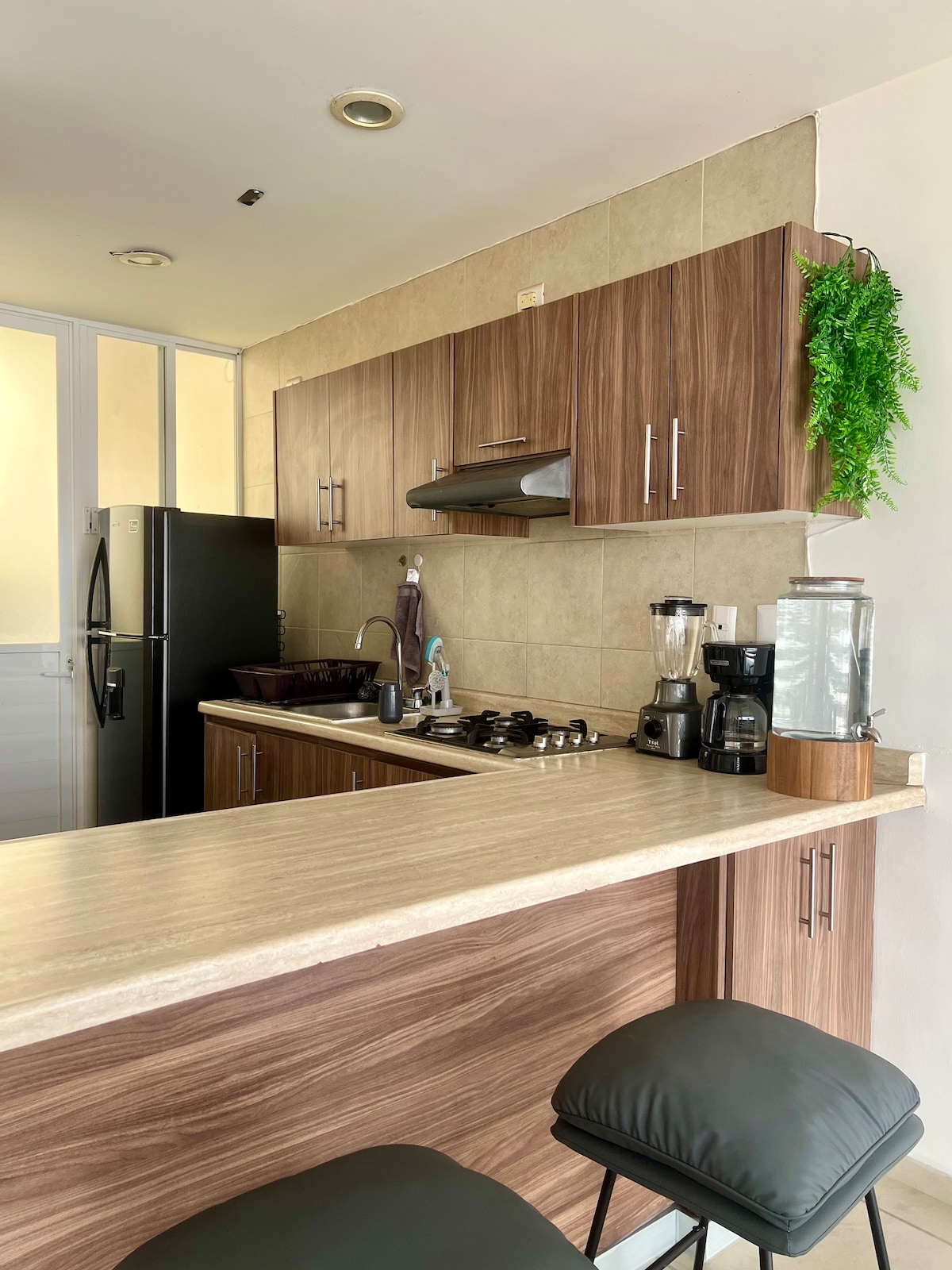 Un departamento residencial con mucho estilo ideal para disfrutar con tu familia, dentro de un exclusivo residencial con alberca. ••SI FACTURAMOS•• Cuenta con áreas comunes como alberca,dog park, ajedrez gigante, canchas de fut bol, juegos infantiles, etc. IMPORTANTE: Para el uso de alberca se debe solicitar las pulseras antes del inicio de la reservación. NO ofrecemos el servicio de aire acondicionado, lavadora o secadora.
