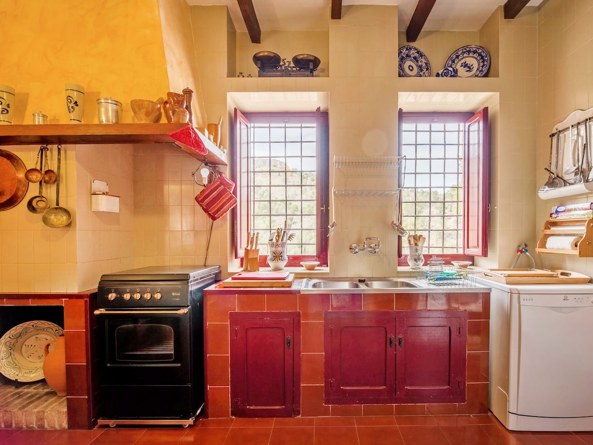 Затишне помешкання для 4 осіб з великою терасою з барбекю, солярієм і джакузі на відкритому повітрі з 40 струменями та захоплюючим видом на Сьєрра-де-Бюрете. Дві спальні з 150 матрацами з пам 'яттю, одна ванна кімната, дров' яний камін та кондиціонер для повного комфорту. Wi-Fi і парковка біля дверей. Дуже тихе природне середовище, ідеальне для відключення. Можливість екскурсій, дегустацій, гірських велосипедних маршрутів, дороги, гравій. Поруч зі знаменитим рестораном La Almazara.