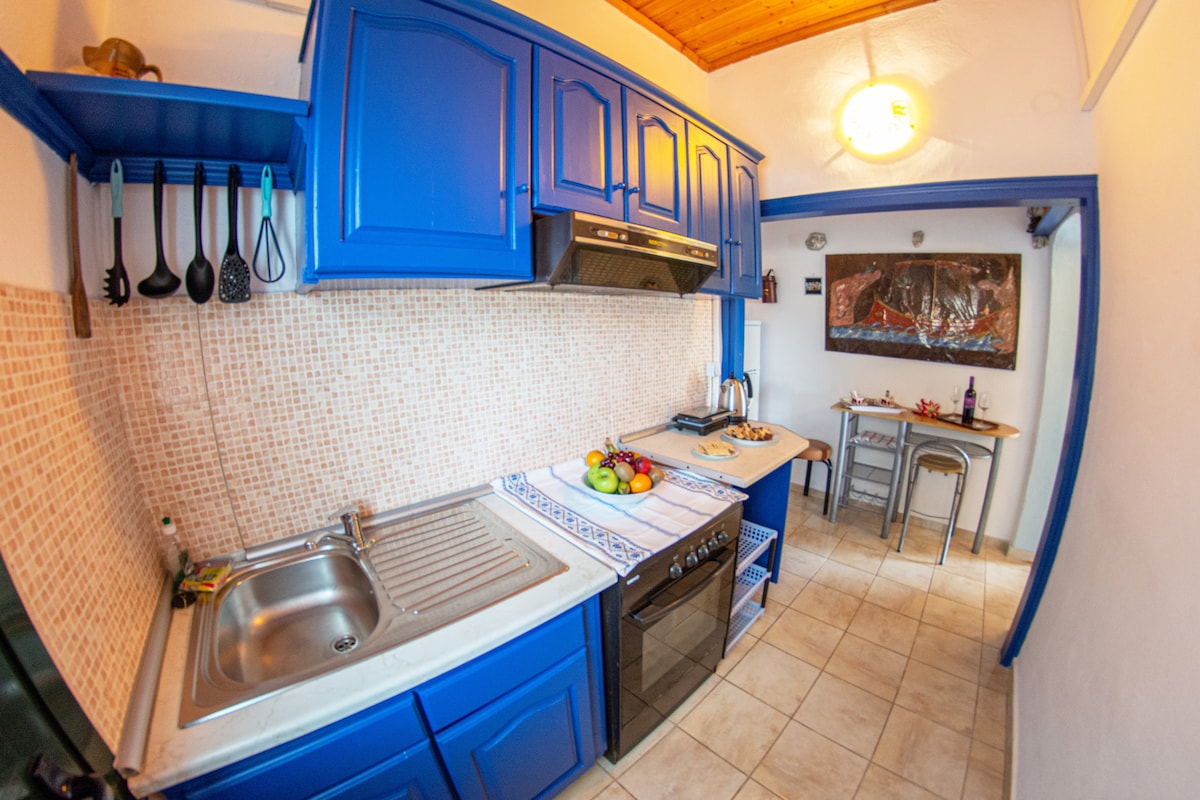 Το σπίτι βρίσκεται στο δεύτερο όροφο,είναι σοφίτα 40 τ.μ. με εμφανή σκεπή.Έχει ένα υπνοδωμάτιο,μπάνιο καθώς επίσης και ένα κοινόχρηστο χώρο που περιλαμβάνει την κουζίνα και το σαλόνι.Το πιο ωραίο σημείο του σπιτιού όμως θεωρούμε πως είναι το μπαλκόνι το οποίο είναι αρκετά μεγάλο και έχει θέα προς την Μαρίνα με τα σκάφη και το βόρειο τμήμα του νησιού.