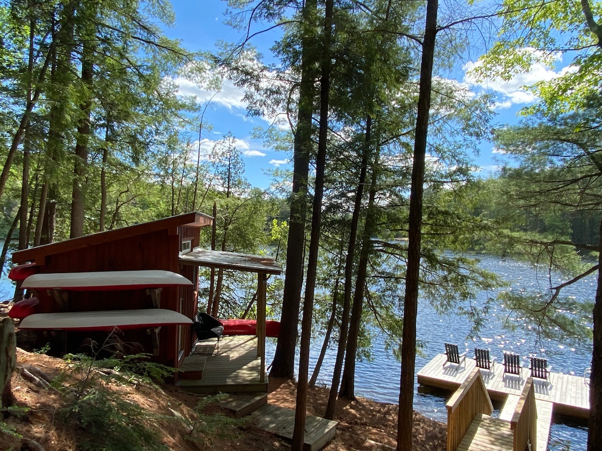Modern Waterfront 1 bedroom cottage on the lake. Enjoy one of many water toys, Kayaks, Canoes , Paddle Boats, Paddle Boards! Relax on the deck with the beautiful lake views, or get around a bonfire. Walk out deck with a bbq, kitchenette, Satellite Tv, WiFi, AC, the perfect get away! Single room, 1 bedroom, and 3 bedrooms and 5 bedrooms cottages available. **May - Oct and selected weekends, Check in and Check out days, , Monday, Wednesday or Friday. Weekends 3 days, Long Weekends 4 Days**