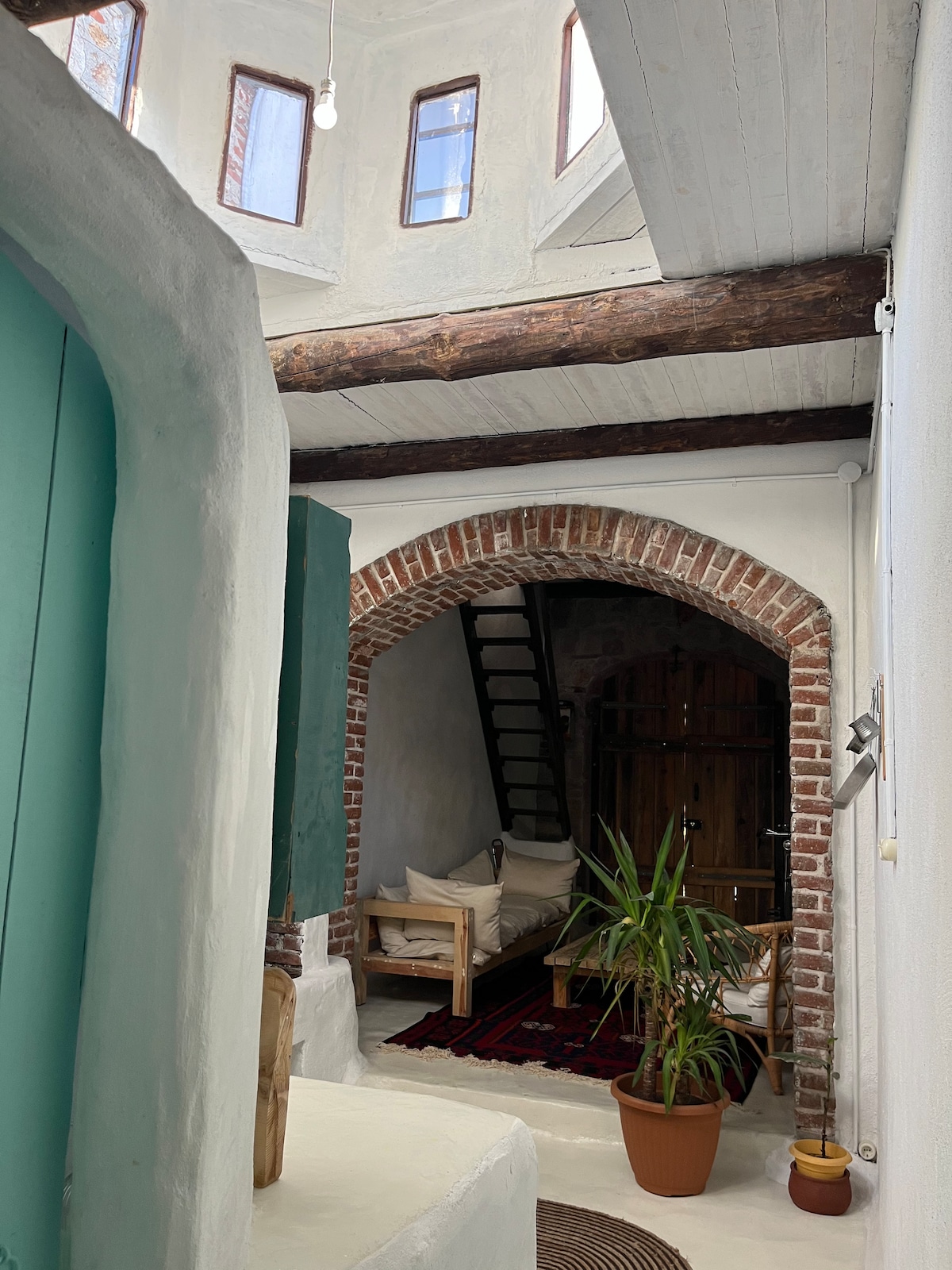 Оточена красивими грецькими будинками, вона розташована на тихій вулиці, в декількох хвилинах ходьби від кафе та громадського життя. Ретельно відремонтований приватний будинок, який відображає дух північно-егейського міста. Кам’яні стіни, високі стелі та тихий двір; у місті, але подалі від натовпу, для тих, хто справді відчуває Егейське море.