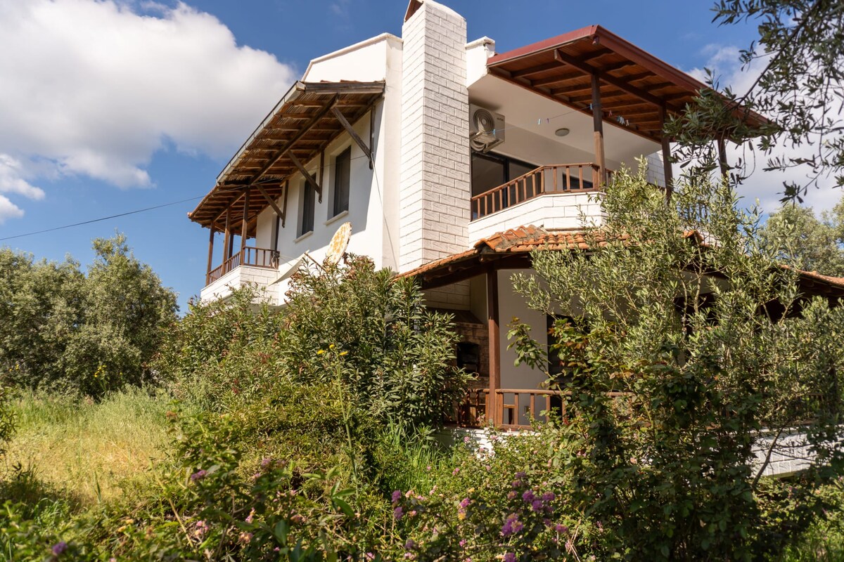 Моє прекрасне, повністю відремонтоване місце ідеально підходить для сімейного та групового відпочинку. 1 хвилина від центру Кунди та 8 хвилин до центру міста Айвалік на автомобілі. - Зовнішній краєвид на кожну кімнату. - Дуже велике відкрите та закрите патіо. - оновлені туалети; - оновлена кухня; - Ретельно підібрані аксесуари та меблі, які мають різні історії. - 24 години гарячої води - Кондиціонер - Нагрівач (зима)