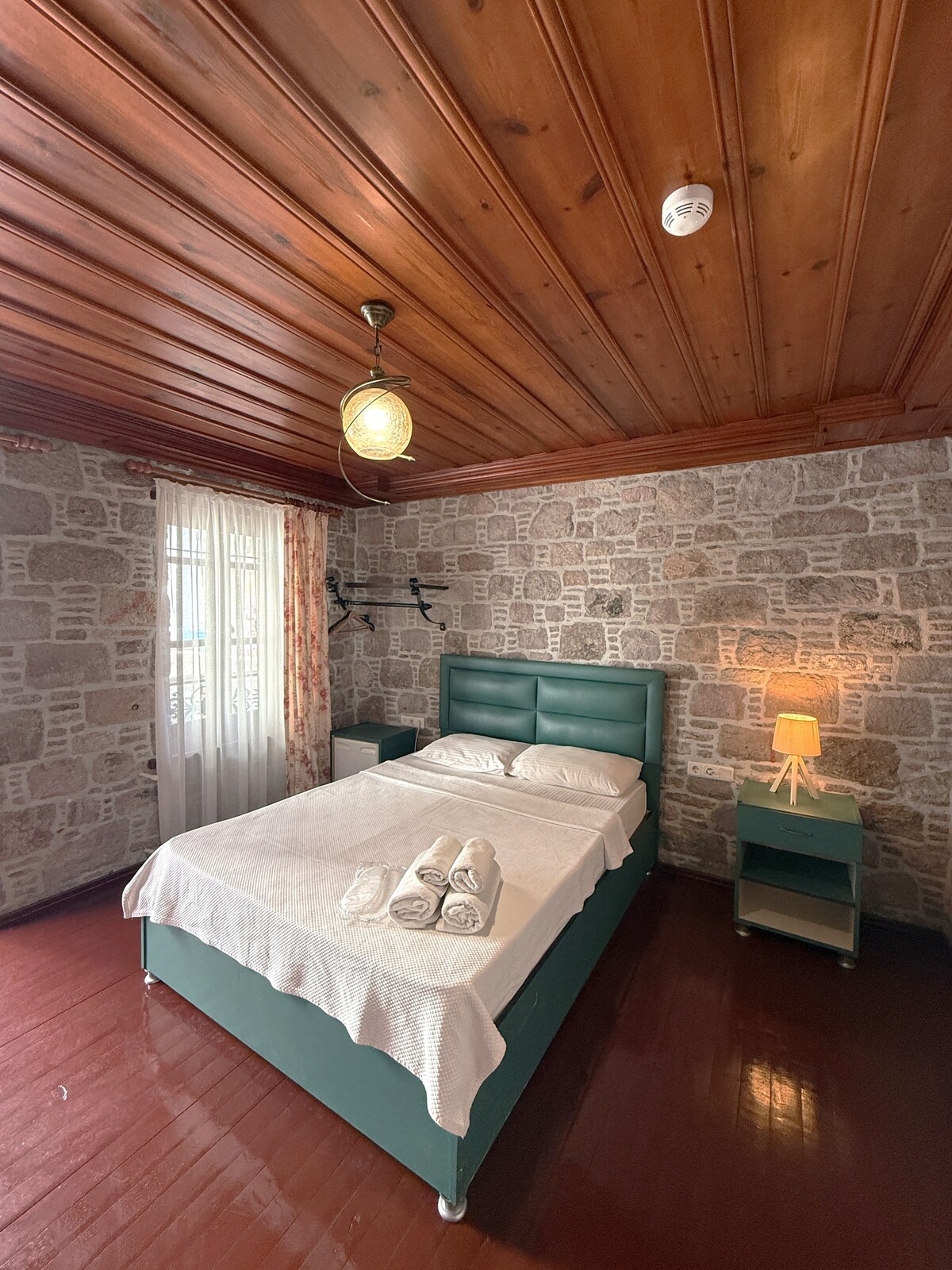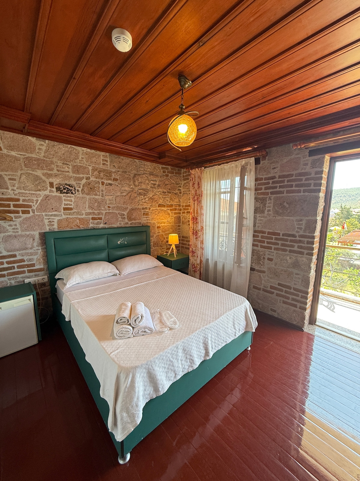 Прямо в центрі Айваліка, дуже близько до всього і дуже далеко. Близькість до всіх пам 'яток, а також розваг і веселощів також ідеально підходить для відпочинку з його розташуванням поблизу. Наш будинок, який перетворений зі старого кам 'яного складу, має все необхідне. Тепловий насос для зими, кам 'яні стіни для літа та кондиціонер... Лаунж внизу, окрема кухня та обідній стіл, сад поза кухнею. Дві кімнати нагорі, двоспальне ліжко в кожній кімнаті, велика ванна кімната, гардеробна. Вода не відрізана через своє розташування, потік води ніколи не зменшиться.