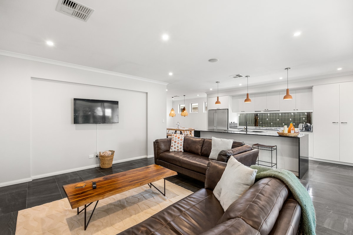 Чудовий пляжний відпочинок - це втеча вашої мрії в Перті! Це розкішне помешкання з 4 спальнями розташоване в декількох кроках від прекрасних пляжів. До послуг гостей головний люкс «super king-size» з постільною білизною Sheridan, театральною кімнатою з Foxtel, кавою Nespresso, безкоштовним Wi-Fi та повноцінною кухнею. Змийте душ на відкритому повітрі, випийте безкоштовне вино та розслабтеся в повному комфорті. За кілька хвилин можна дістатися до кафе, магазинів і національних парків - це місце, де починаються незабутні прибережні свята. Відпочиньте з комфортом і відкрийте для себе найкращі місця Перта з цього просторого прибережного помешкання.