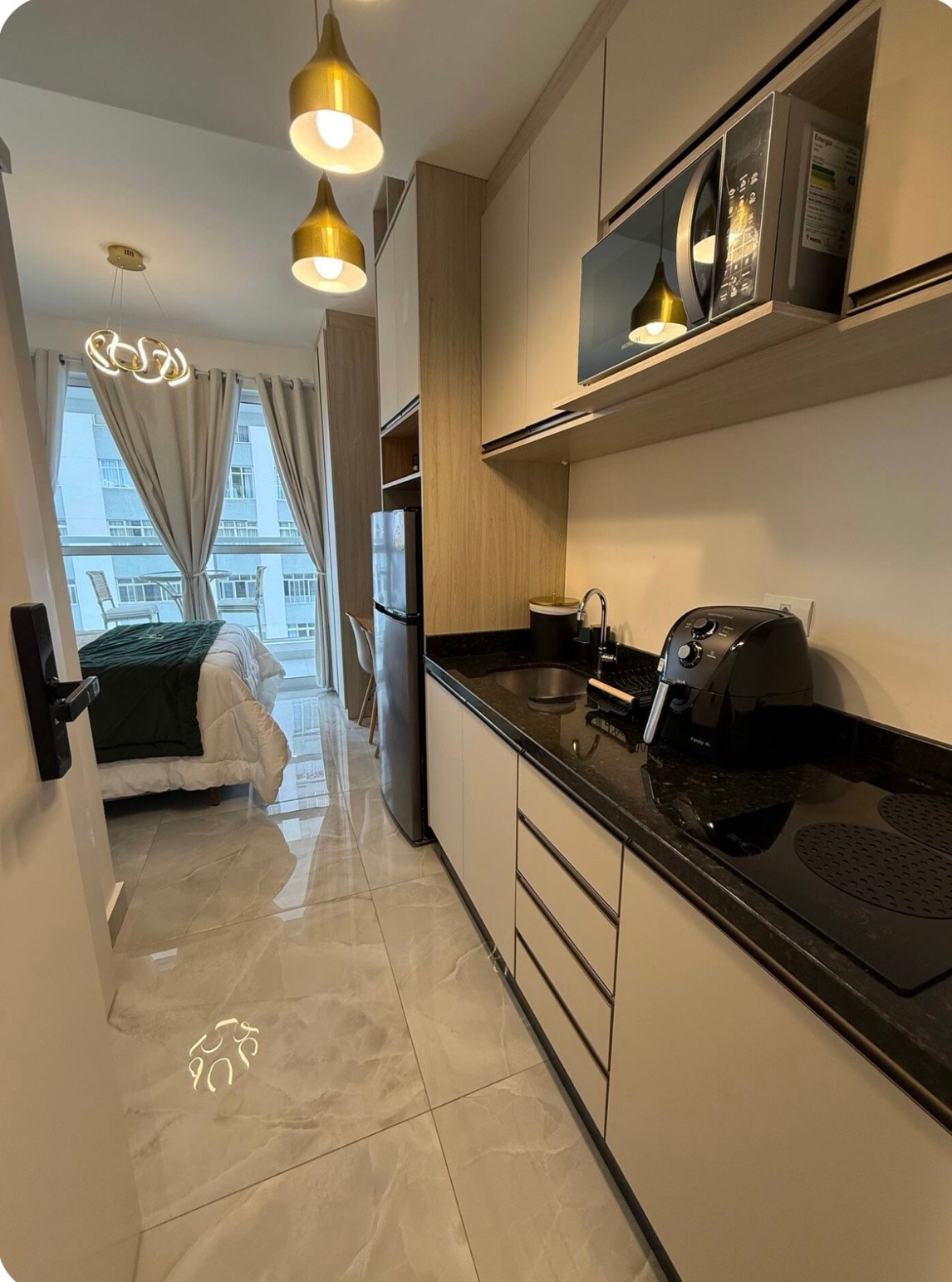 Сучасна студія, абсолютно нова, затишна, ідеальне розташування, з прекрасним видом з балкона, особливо вночі . Швидкий Wi-Fi, робочий стіл, 55-дюймовий смарт-телевізор, ліжко queen-size. Кондиціонер (гарячий/холодний). Пральна та сушильна машини, а також красивий острів на кухні. 50 кв. м у дуже 27-му стилі, тихо. У центрі/Batel, недалеко від магазинів, банків, торгових центрів, гастрономічного центру та лікарні . У будівлі :басейн, тренажерний зал, ігрова кімната, сауна, джакузі, цілодобовий консьєрж.