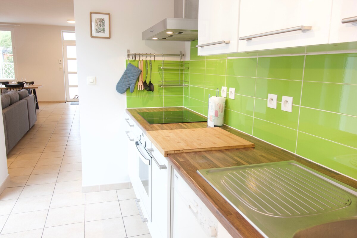 4-зіркове мебльоване туристичне помешкання: 65 кв. м у зеленому середовищі. З приватної тераси відкривається краєвид на дубовий і сосновий ліс із пагорбами. Спальня з двоспальним ліжком (готельна якість) та окремою ванною кімнатою + повністю обладнана відкрита кухня з видом на вітальню з 2 односпальними диванами-ліжками. Повне обладнання, спільний басейн із власниками Ми будемо раді обговорити найкращі місця в цьому регіоні, якщо гості забажають.