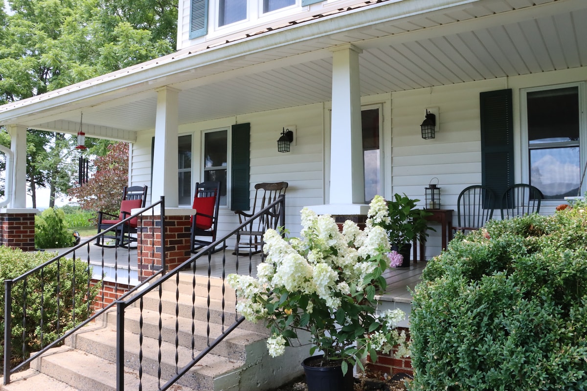 Our home is a 2 bedroom, 2 bath post & beam style cabin. It sits on 4 acres with mountain access/views, and river views with easy access. We are directly on the New River with 330 feet of river frontage at the end of a private road with plenty of distance to the closest neighbor. The living room has a beautiful stacked stone fireplace with a pullout couch and 2 sets of French Doors opening onto the front porch and the spacious side covered porch.