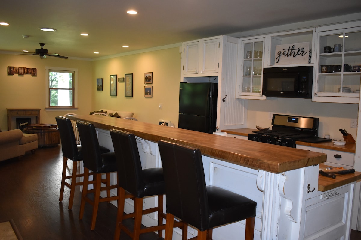 Mountain Creek Lodge - це повноцінне помешкання з двома спальнями та двома ванними кімнатами. Він може спати до шести з нашим королевою розміром Футон. Доступ до повноцінної кухні з закусками та кав 'ярнею. У нашому будинку є прекрасні зовнішні умови для дикої природи. У той час як деякі можуть насолоджуватися сімейними розвагами навколо каміна, інші можуть насолоджуватися розслабленням у гідромасажній ванні. Вам не захочеться залишати цю чарівну унікальну оселю. Ми віримо, що вам сподобається ваше перебування, дякуємо, що відвідали наш сайт. Боже благослови!