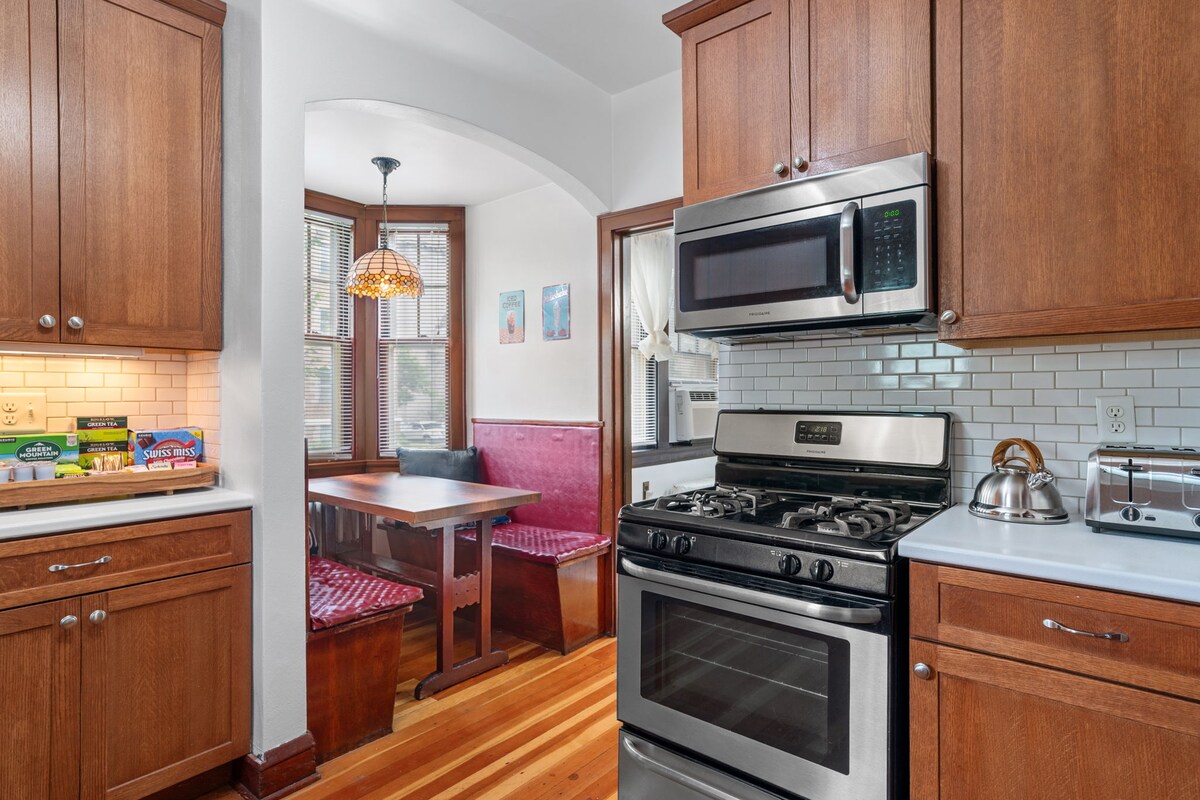 Ласкаво просимо до The OG – справжнього вікторіанського прихистку, натхненного щирою гостинністю моїх бабусі й дідуся Роудс. Ці просторі історичні апартаменти, розташовані в тихому житловому районі Сент-Пола, пропонують простір для відпочинку, приготування їжі, роботи або ігор. Весна та літо запрошують випити кави на терасі за легкими фіранками та під золотистими вогниками. На ваш розсуд – повноцінна кухня та затишні житлові приміщення, а також зручний доступ до сусідніх університетів, кафе та обох центрів міста. Затишне місце, куди можна повернутися після дослідження Міст-побратимів.