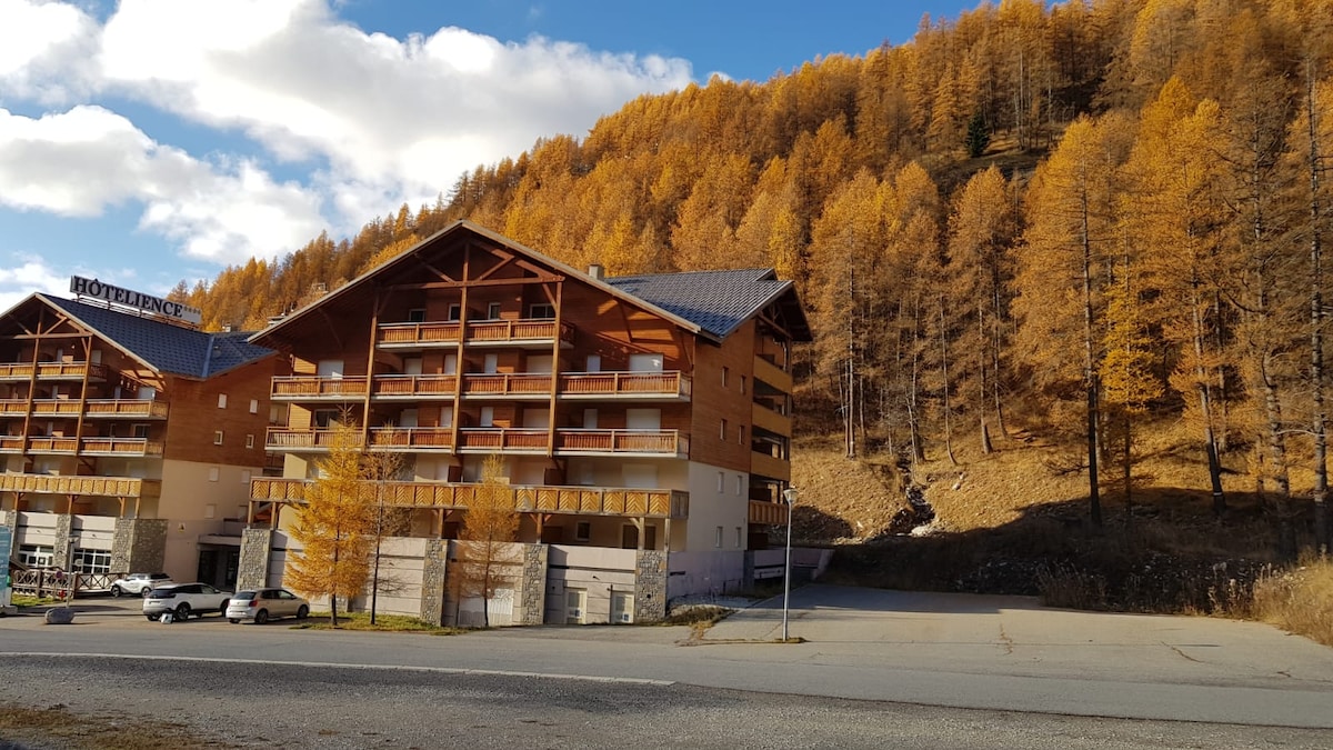 «la cabane des orres 1800» 2 спальні, 2 ванні кімнати та гірський куточок, з панорамним видом на гори, повністю відремонтований в центрі курорту Les Orres 1800 - 50 м пішки від схилів/оренди/ESF/pioupiou - Басейн з підігрівом, джакузі, сауна та хаммам. - походи на виїзд пішки - 20 хвилин від Lac de serre-ponçon. - парковка на курорті біля будівлі, хвилина висадки - магазини/ресторани в 100 м; Прибирання включено, можливість оренди білизни (подробиці нижче)