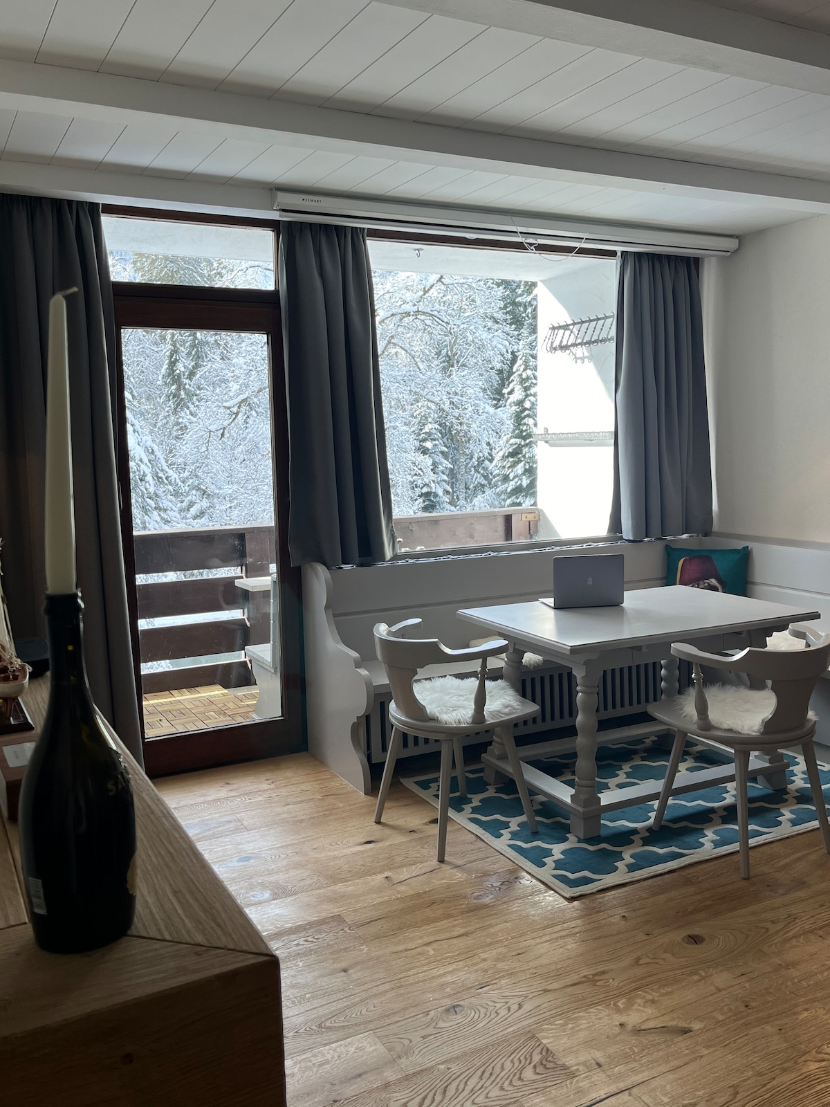 Наша квартира оздоблена старим деревом, каменем та високоякісними матеріалами в альпійському стилі. Більшість меблів прекрасні та унікальні. Ми розійшлися думками про те, як створити максимально можливе відчуття благополуччя. Мета полягала в тому, щоб потрапити всередину і почуватися добре, насолоджуючись чудовим видом на кафедру найкращим чином. У багатоквартирному будинку є великий панорамний басейн та жахлива фітнес-зона.😂 Будинок має чудове розташування та дуже хорошу доступність.