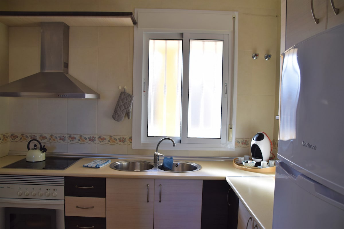 ВІДЧУЙТЕ ПРИВІЛЕЇ НОВОГО БУДИНКУ ПІД ЧАС ПЕРЕБУВАННЯ У VERA PLAYA! Нещодавно відремонтована квартира в дуже тихому приватному житловому районі менш ніж за 5 хвилин ходьби від найбільшого пляжу з дрібним піском у всьому районі. Ідеально підходить для насолоди сонцем і спокоєм. Поснідайте з першими променями сонця, щоб розпочати день спокою та веселощів з енергією та безліччю сонця!