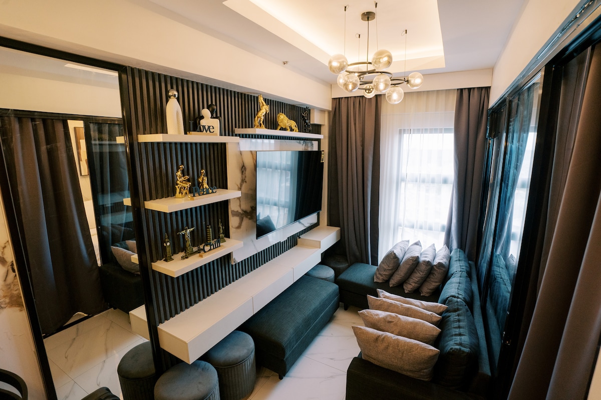 Насолоджуйтеся перебуванням у нашому сучасному помешканні з 2 спальнями, всього в 12 хвилинах від аеропорту Панглао та в 16 хвилинах від пляжу Алона. Відпочиньте в затишних спальнях, відпочиньте у вітальні та легко готуйте на нашій сучасній кухні. Плавайте в басейні, тренуйтеся в тренажерному залі та безпечно паркуйтеся. Ідеально підходить для ознайомлення з прекрасними пляжами Бохоля та багатою культурою. Ми з нетерпінням чекаємо на вас у нашому маленькому раю!