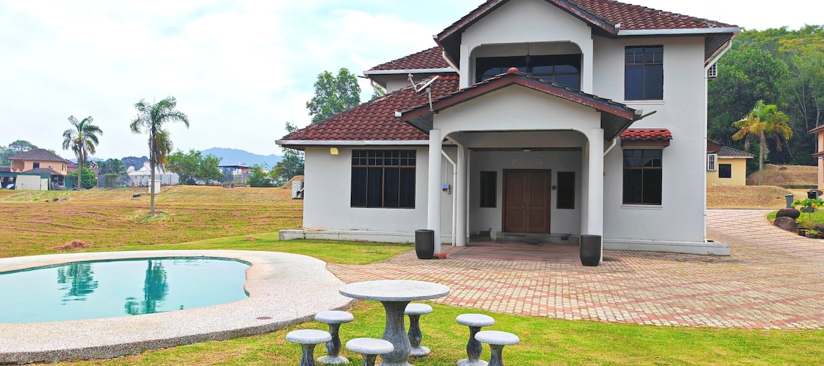 Спокійний, природний затишний будинок, цегляний будинок з басейном, відкритий сад з барбекю, чудове місце для сімейного відпочинку в Мелаці,ми також надаємо відкритий садовий балкон, гарне середовище, дружній район, спокійне місце Ціна залежить від кількості гостей, будь ласка, зв 'яжіться з нами для отримання більш привабливої пропозиції. Ви можете вибрати D' story.