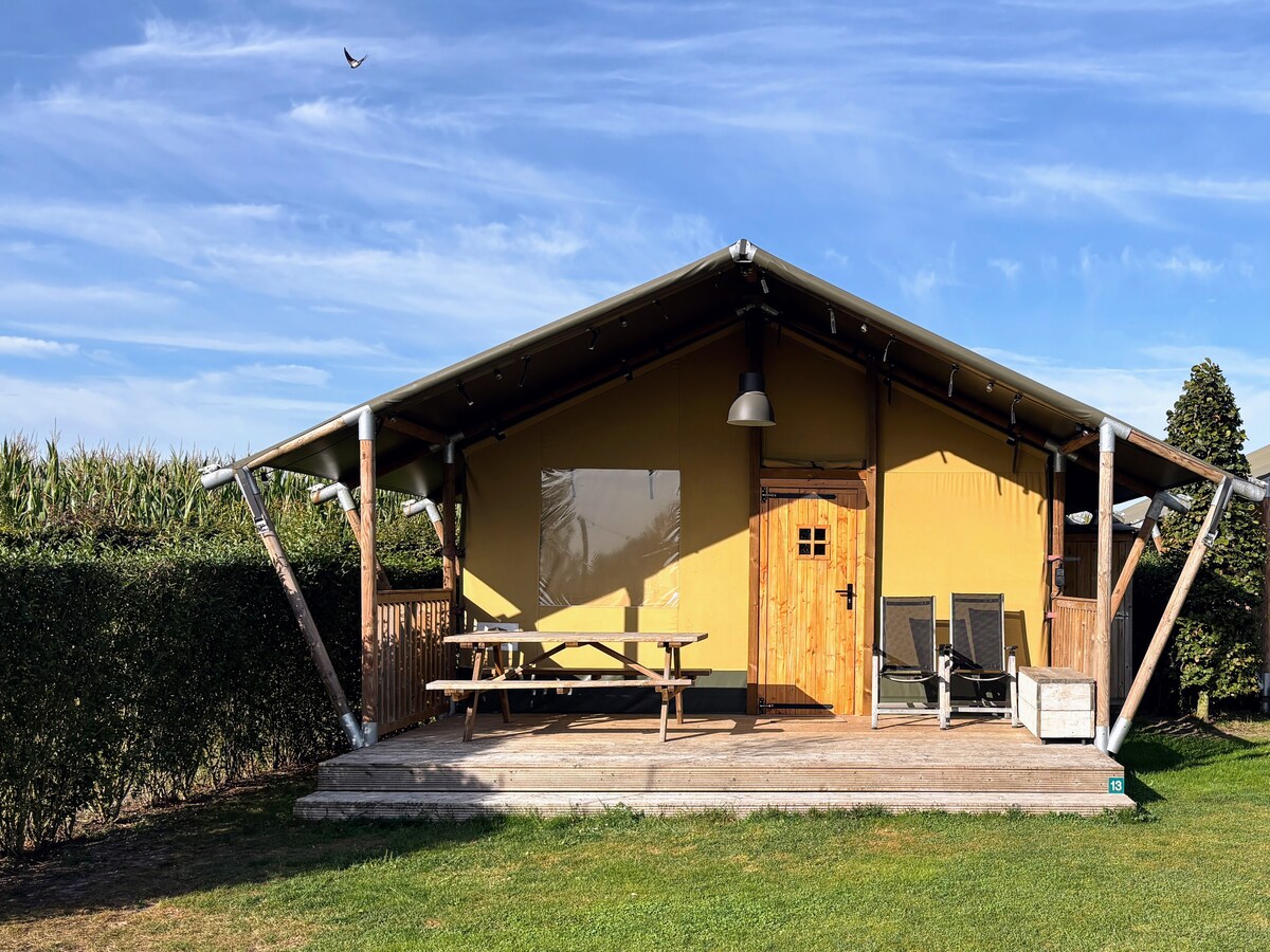 Розкішний намет для сафарі в тихому міні-кемпінгу Petit013. Ми прагнемо до гостинності, розкоші та комфорту. Намет має власну розкішну ванну кімнату з душем, раковиною та туалетом. Кухня повністю обладнана посудом, кухонним приладдям і кухонними рушниками. На особу є постільна білизна, а банні рушники готові (включено у вартість). Приходьте і насолоджуйтеся спокоєм і тишею. Прокидайтеся вранці на сонці на терасі. Увечері випийте під вечірнім сонцем на сидінні за наметом.
