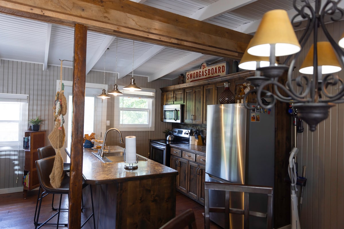 Відпочиньте в цьому затишному зрубі на озері Тейбл-Рок із прямим доступом до води, байдарками, терасою, грилем і місцем для багаття. У цьому чарівному зрубі з однією спальнею та однією ванною є ліжко queen-size з розкладним диваном і розкладним диваном. Поруч із Срібним доларом і пам 'ятками Бренсона, які ідеально підходять для відпочинку та пригод. Насолоджуйтеся класичними фільмами VHS, ретро-іграми (N64 і Super Nintendo), а також програвачем платівок із колекцією вінілів. Забронюйте зараз, щоб отримати ідеальне поєднання відпочинку, пригод і ностальгії!