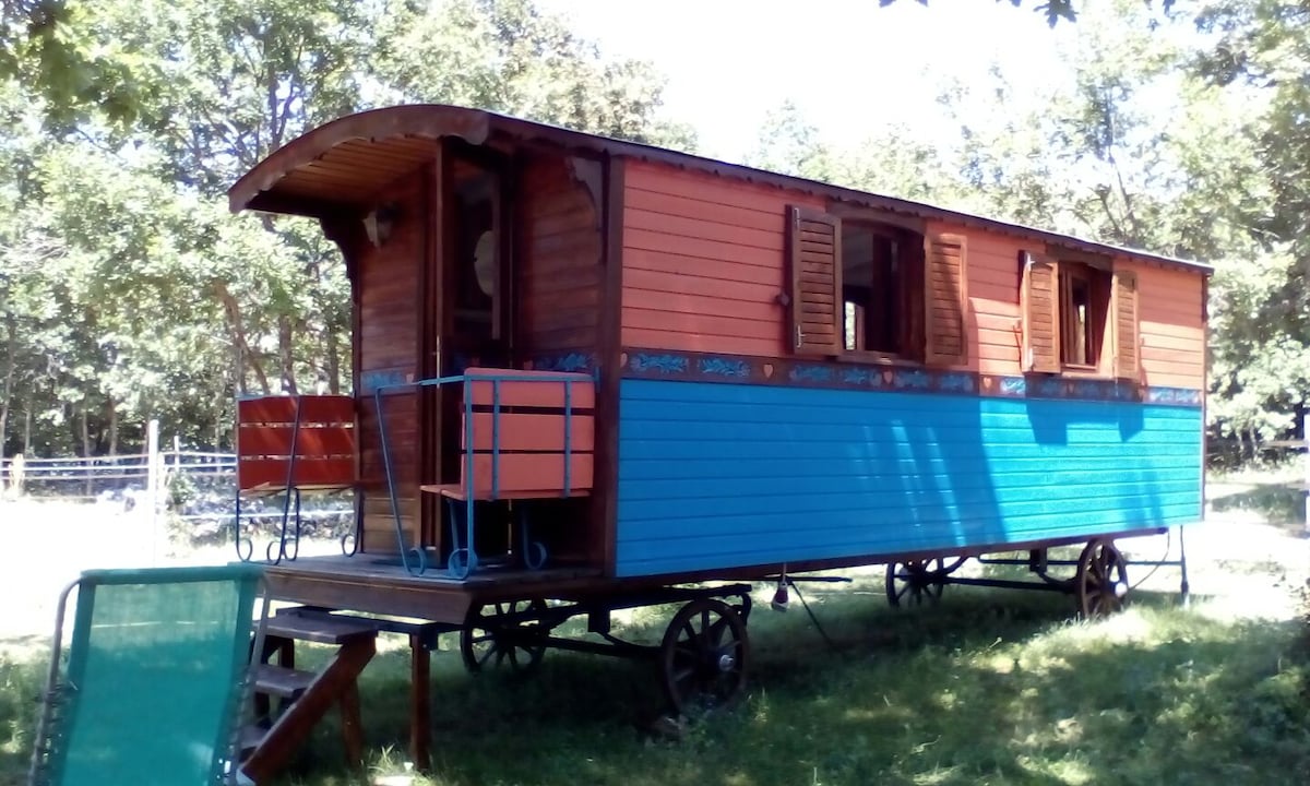 Au cœur du Lubéron, charmante roulotte type western entièrement équipée, calme, proche des plus beaux villages de notre région Apt, Roussillon, Gordes, le Colorado provençal Terrain privé sans vis à vis Vos voisins : Pepito notre âne 🙂 et son nouvel ami Nikito 🙂 Notre petit plus : un spa privatif ( disponible du 1 mai au 1 septembre ) Nous espérons vous accueillir avec le même plaisir que nous avons eu à creer ce havre de paix Animaux acceptés sans supplément Draps et serviettes fournis