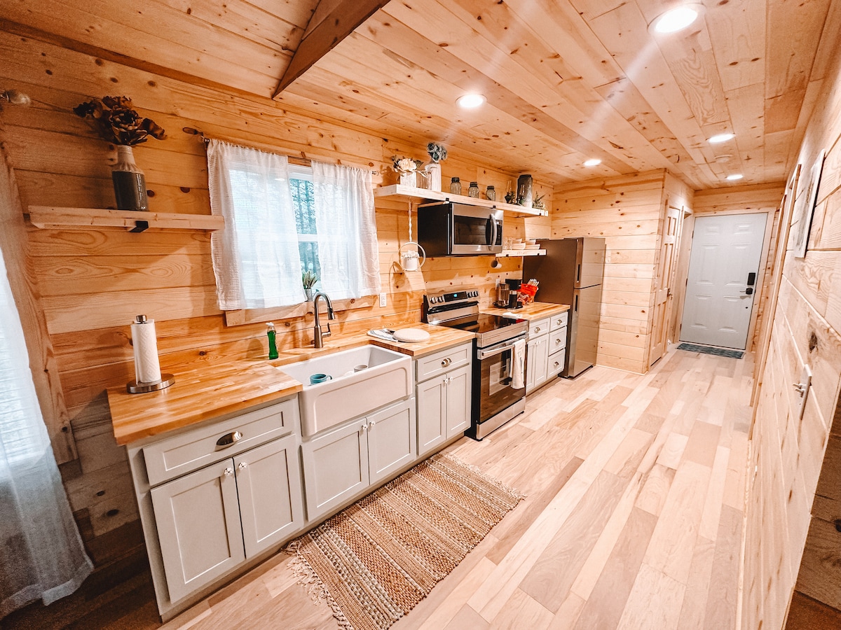 Ласкаво просимо до Camp Mae, трикутного будиночка в скандинавському стилі в Монтіглі, штат Теннессі. Мінімалістичний дизайн, але елегантний, що пропонує ідеальний відпочинок - в декількох хвилинах від пішохідної стежки Fiery Gizzard і Монтигл. Розслабтеся у гідромасажній ванні або збирайтеся біля вогнища. Для екологічно свідомих мандрівників ми надаємо зарядний пристрій для електромобіля. Відчуйте усамітнення гір, перебуваючи всього в декількох хвилинах від походів світового класу, місцевих ресторанів і магазинів. Цей ретрит гармонізує розкіш із природою в спокійній обстановці.