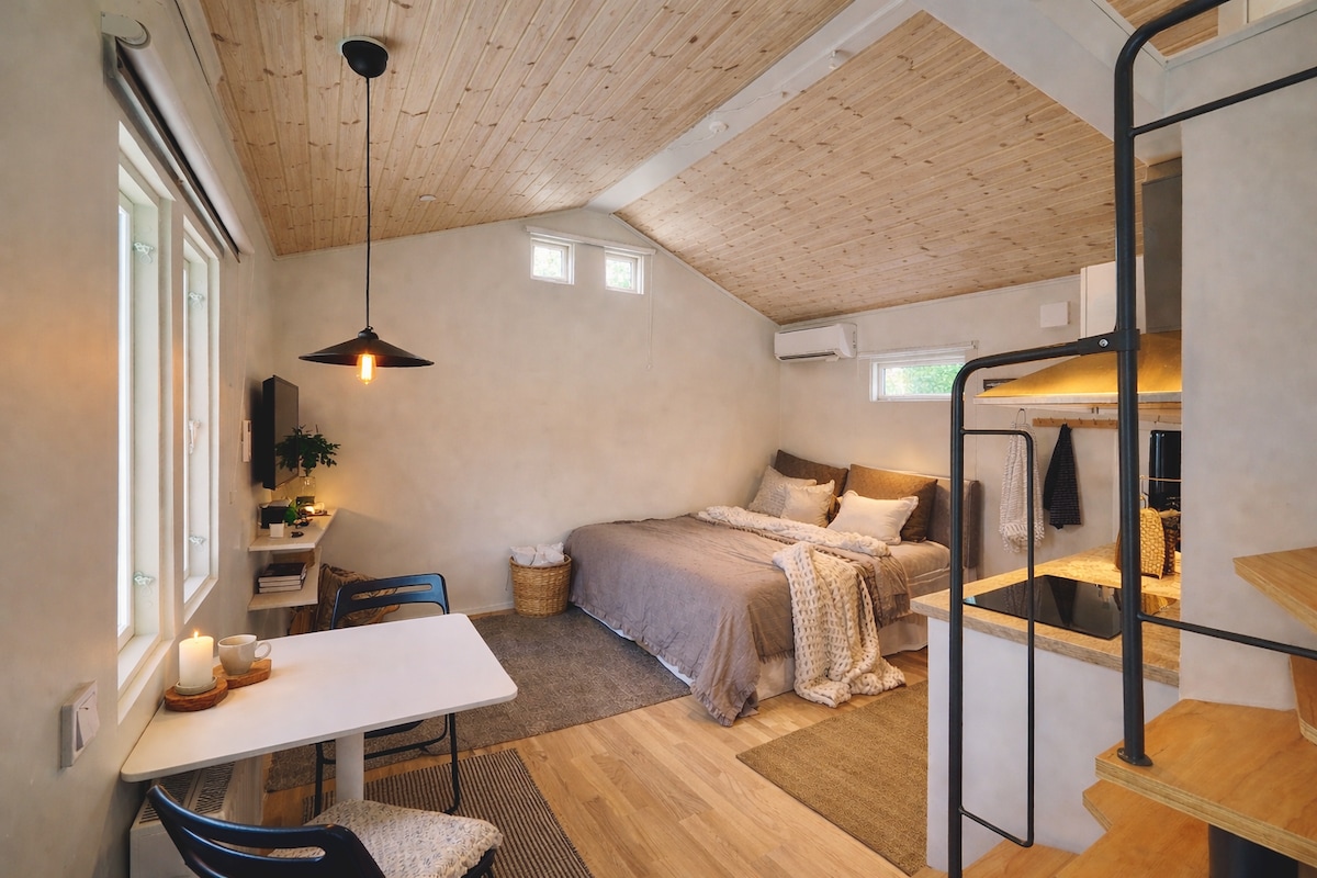 Тепер ми нарешті здаємо в оренду наш нещодавно відремонтований (готовий у 2022 році) унікальний фермерський будинок з 1 кімнатою та кухнею на 2 поверхах. На першому поверсі розташована вітальня/кухня, міні-кухня з 2 конфорками, мікрохвильова піч,кавоварка та холодильник із морозильною камерою. Обідній стіл із місцем для 4a. Ванна кімната фермерського будинку, туалет, раковина з великою лавкою для зберігання та душ зі скляними стінами душу. На верхньому поверсі є спальня, 160 ліжок, невеликий диван і крісло, а також поворотний смарт-телевізор. Фермерський будинок розташований у старому Gävle, прямо в центрі міста, неподалік від усього.