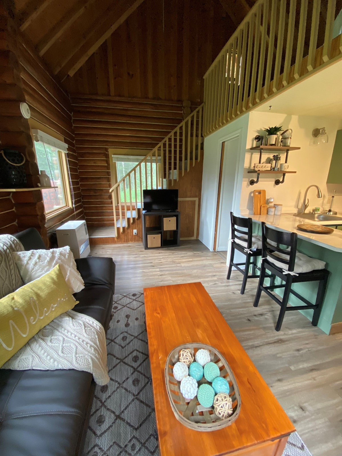 Ласкаво просимо до зрубів Рівербенд. Розташоване вздовж красивої річки Чена всього за декілька хвилин їзди до Північного полюсу або центру міста Фербанкс. Ви насолоджуватиметеся власним зрубом із балконом, що знаходиться біля головної спальні, що ідеально підходить для перегляду Аврори Бореаліс або полуночного сонця!! Насолоджуйтеся спокійним повітрям і спокійними ночами, бронюючи цей зруб для відпочинку, що ідеально підходить для пар або соло-мандрівників.