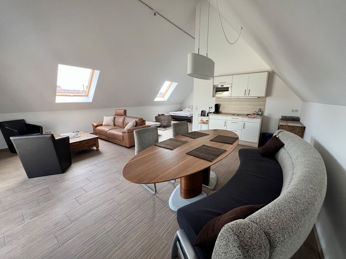 Центральне, але тихе помешкання в доглянутій атмосфері з безкоштовною приватною парковкою (в тому числі для фургонів). Близькість до автомагістралі забезпечує зручний доступ до району Рейн-Майн. Ми також раді розмістити великі групи, оскільки у нас є кілька квартир в тій самій будівлі. Ми будемо раді надати вам індивідуальну пропозицію для довготермінових бронювань.