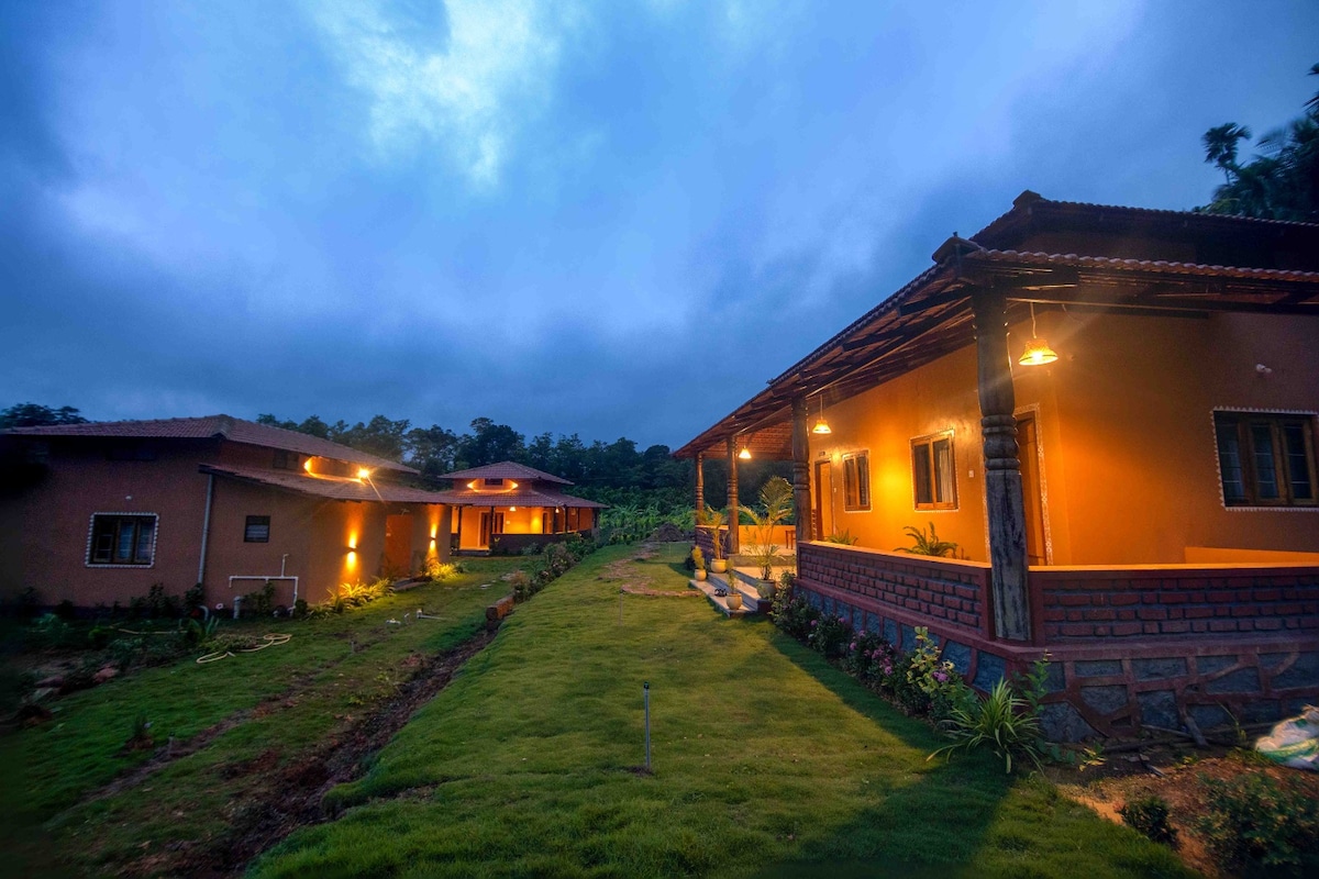 Ласкаво просимо на садову віллу - спокійне помешкання з 3 спальнями в Данделі-Рамнагар, Карнатака. Ця затишна вілла для пар пропонує віллу без кондиціонера з 2 спальнями, суміжними ванними кімнатами та окремими балконами, а також окремий котедж для пар із кондиціонером і власною ванною кімнатою. Ідеально підходить для пар, невеликих сімей або друзів. Відпочинок поєднує в собі приватність, комфорт і природу. Відпочиньте в спокійному саду, насолоджуйтеся стравами з меню à la carte та відвідайте найближчі пригодницькі заходи для незабутнього перебування.