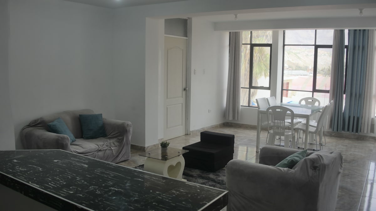 Насолоджуйтеся комфортним, тихим перебуванням з усім необхідним, щоб почуватися як удома. Наша квартира 502 (п’ятий поверх) розташована в Амарілісі, одному з найбезпечніших і найзручніших районів Уануко, ідеально підходить для сімей максимум з 5 осіб, пар або мандрівників, які шукають комфорт і гарне розташування. 💛 Ідеально підходить для Сім’ї, які подорожують з дітьми. Пари, які шукають комфортне, тихе помешкання. Невеликі групи друзів. Мандрівники, які подорожують у справах і цінують домашній комфорт.