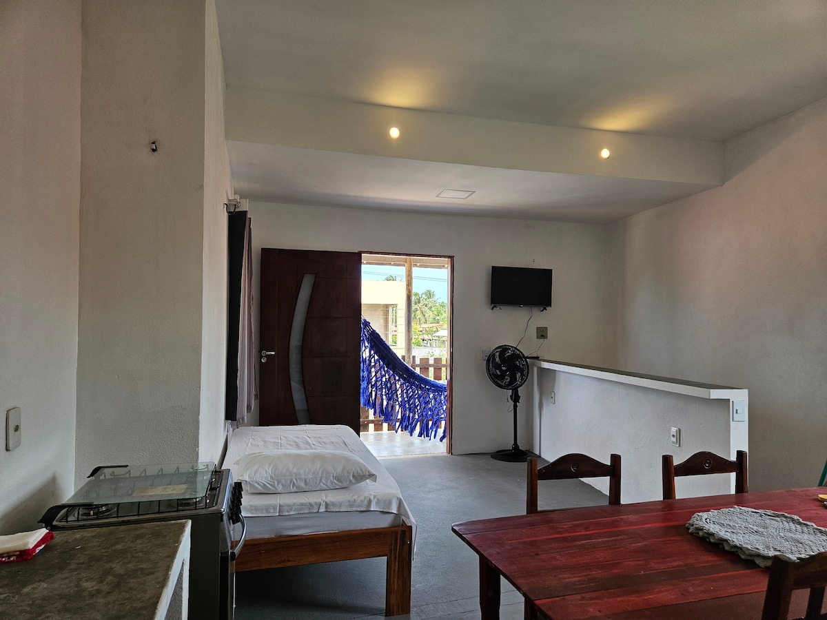 Забудьте про свої турботи в цьому тихому, просторому місці. Casa Papagaio - чудовий варіант для пари, яка шукає усамітнення та комфорту, а також контакту з природою. У будинку є люкс з кондиціонером та вентилятором, ліжко розміру Queen size, простора ванна кімната з гарячим душем, обладнана кухня, відкрита зона з барбекю, стіл і стільці, гамаки та душ на відкритому повітрі, з видом на сад, а також парковка. Ми розташовані приблизно в 350 м від пляжу і недалеко від Cabana do Kite!