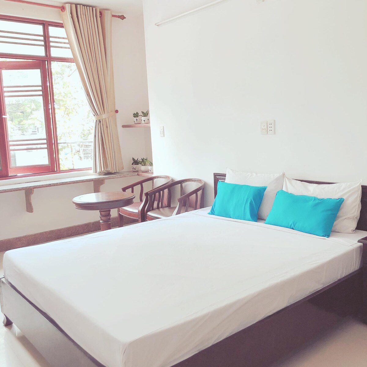 A lovely spot where you can experience authentic local life with real locals and offer an ideal location with peaceful view: 5 mins of walking to the beach Room with full amenities: AC, queen bed, towels, mini bar, kettle, coffee, water, free strong wifi, private bathroom Room with garden view Join many local activities with us: having meal with family, play sport, go to the local market (depending on weather and famiy time. These are free of charge. Please request if you would like to join.