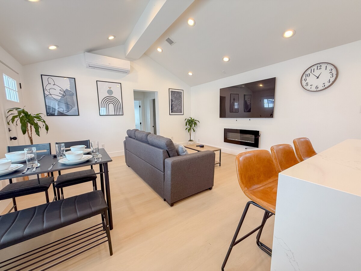 D'Loft нещодавно побудований у липні 2023 року. Ваша сім 'я буде поруч із усім, коли ви зупинитеся в цьому оселі, розташованому в центрі міста. Ми знаходимося в 10-15 хвилинах від Діснейленду, пляжу, магазинів тощо! D'Loft має відкритий концептуальний дизайн, одягнений у високоякісну побутову техніку та власний патіо. Відпочиньте в зручному ліжку Cal King на додаток до дивана-ліжка розміру Queen size + спальне місце, доступне у вашому розпорядженні. Відкрийте подвійні повзунки та зробіть внутрішній простір на відкритому повітрі!