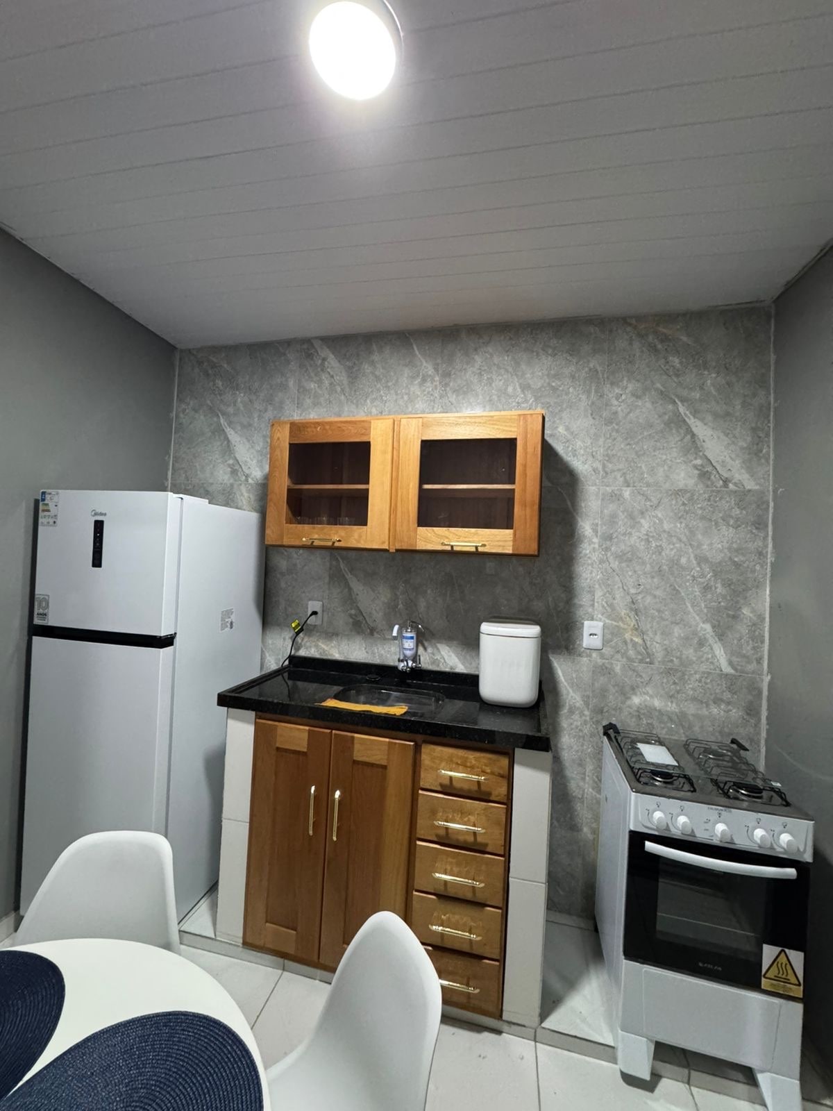 Este estúdio foi pensado para oferecer conforto, praticidade e estilo em cada detalhe. O ambiente é novo, climatizado e decorado em tons neutros, com iluminação em LED embutida no teto, criando uma atmosfera sofisticada e relaxante. Conta com cama de casal confortável, sofá cama adicional, mesa para refeições ou trabalho, e uma cozinha compacta equipada com pia, micro-ondas, frigobar e utensílios básicos. Tudo pensado para uma estadia prática e agradável.