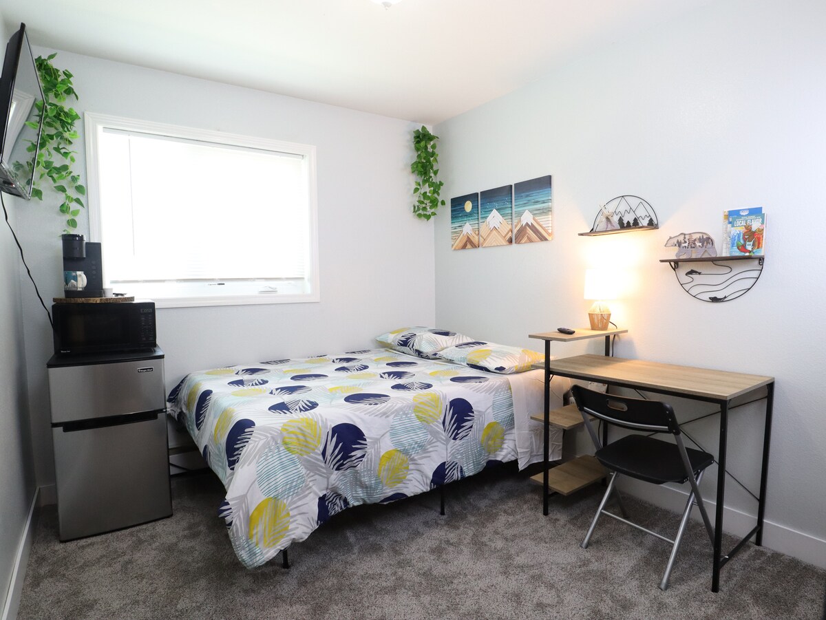 Новий приватний люкс з окремим входом та окремим патіо розташований в приватному кутку вілли Bootleggers. Розташований неподалік від офісів у центрі міста і наповнений відчуттям приватності та безпеки. Наше розташування знаходиться в декількох хвилинах ходьби від центру Анкориджа та легко дістатися до пригодницької Аляски. Відпочинок на відкритому повітрі з приватним патіо з видом на захід сонця. Насолоджуйтеся барбекю та відпочивайте з видом на залив Кука, хребет Аляски - усе з чарівної бухти Бутлеггера.