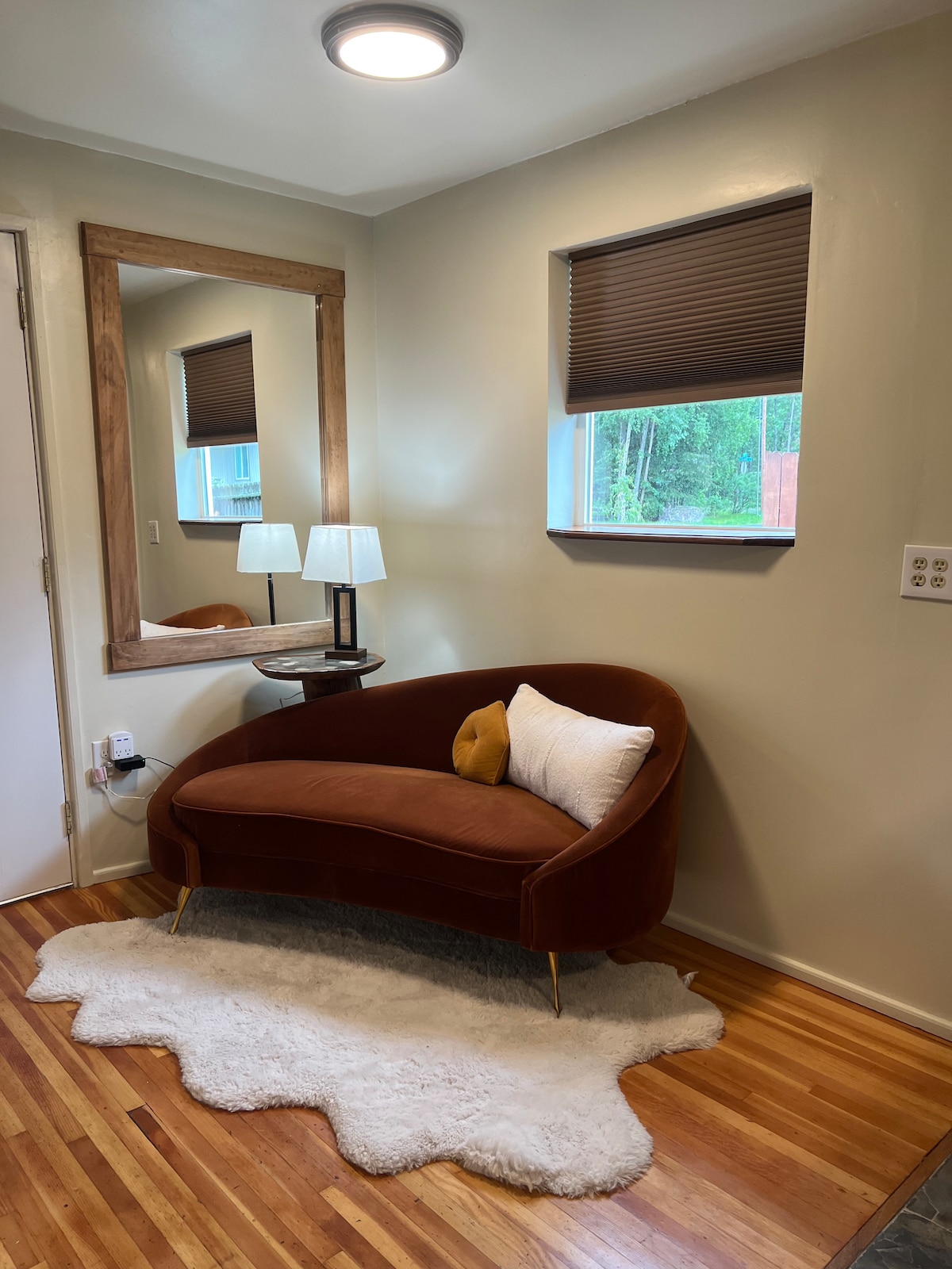 Just 15 minutes from the airport and 5 minutes from downtown, nearby trails, and parks, you can enjoy a private slice of the Alaskan wilderness with a stunning view — right in the heart of Anchorage. A truly rare gem with views you won't find anywhere else centrally located. The Hideaway guest suite has the full Alaskan experience with parkland on three sides, the famous Chugach Mountains through wall-to-wall living room windows, a dedicated workspace, and all the comforts of home.