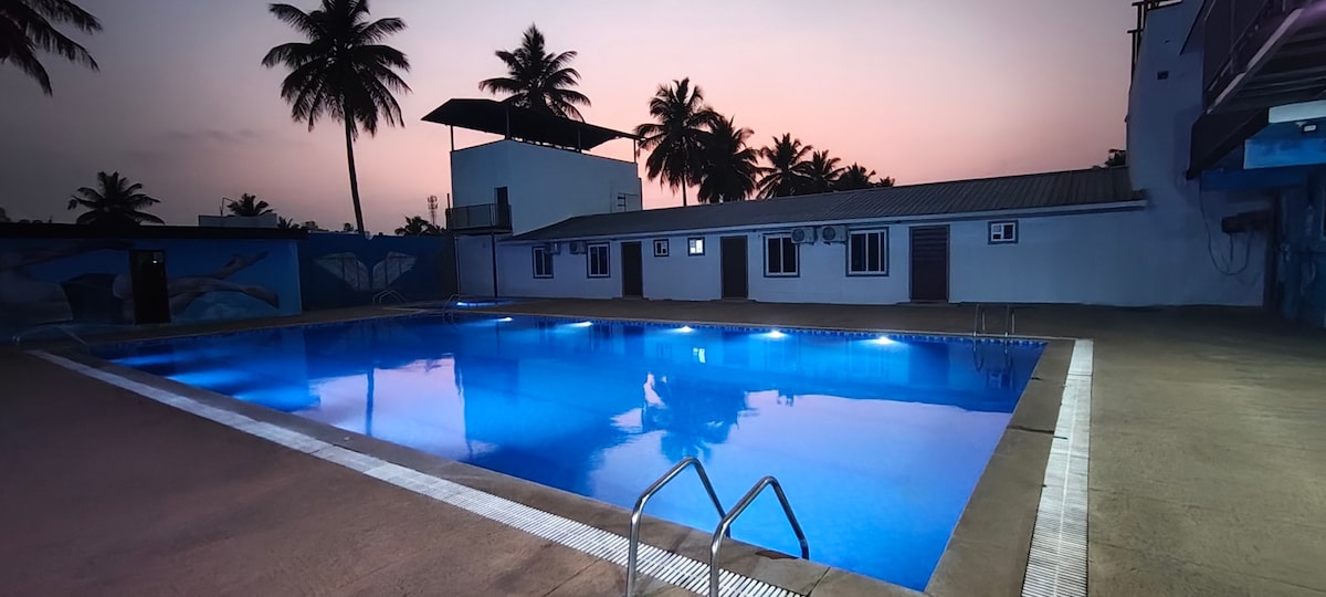 Красиве місце, правильне місце для відпочинку мрії, пожежа в кемпінгу, заходи, весілля, спільний простір, відкрита сцена з газоном, банкетний зал, конференц-зал, оздоровчий клуб і СПА, БАР/ гриль біля басейну, басейн, дитяча ігрова зона, снукер. Початок чудового сніданку на світанку з видом на природу та пташиним співом, чудово пообідайте після свіжого в басейні та завершіть свій день баром/ грилем біля басейну, красивим заходом сонця, місячним світлом і світлячком почувайтеся як удома далеко від дому.