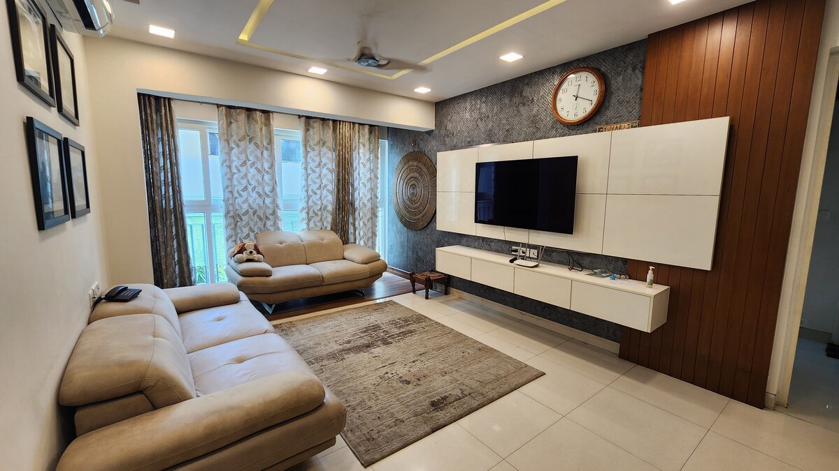 Ласкаво прошу до Kripa Homes Saligramam. Нова квартира 3bhk на 3-му поверсі (ліфт) з проєктором і ванною 3 спальні з ванними кімнатами, оформлені унікальним чином, щоб забезпечити гарне перебування Кухня укомплектована всім необхідним посудом. Гейзер у всіх ванних кімнатах ДБЖ доступне для освітлення та вентиляторів. 5 хвилин від AVM studios, Prasad Labs, Vijaya Forum Mall. 5-10 хвилин до лікарень Kaveri Hospital, Sims Hospital, Suriya Hospital. 1 км до станції метро Крита автостоянка Підходить для сімей і тривалих перебувань.