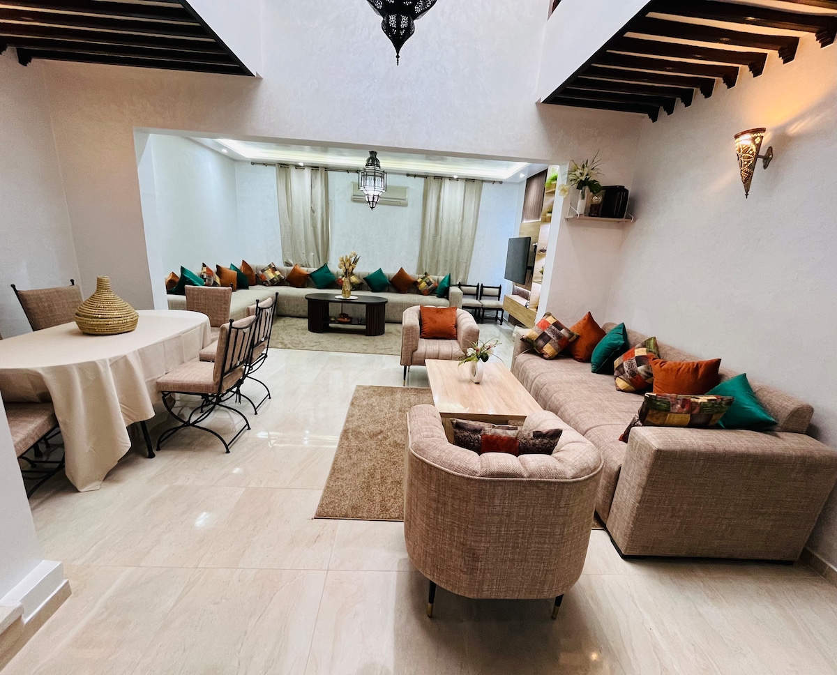 Ви коли-небудь уявляли, що вирушаєте в захоплюючу подорож яскравими вулицями Марракеша? Перестаньте мріяти і починайте жити! Ця унікальна квартира - справжня перлина, яка чекає на ваше бронювання. Розташоване в межах досяжності від усіх чудових місць і зручностей, ваше перебування обіцяє бути чарівним враженням. ✔ Безкоштовна кава та чай <3 ✔ Wi-Fi без швидкості Ліжко розміру «✔king-size» ✔ Безкоштовна пральна машина Постільна білизна✔ найвищої якості «Бекендорфф» ✔ Приватний критий басейн ✔ Великий смарт-телевізор
