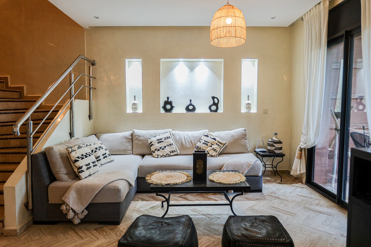 Відпочиньте у своєму 100% приватному затишному та шикарному риаді Beldi. Розташоване в Медіні, з прямим доступом і цілодобовою охоронюваною парковкою за 20 метрів від РІАДА * Включено вихід для прибирання помешкання * Вишуканий декор * Вміст: 7 осіб * Преміальна ванна кімната * Зручний ріад, що зберігає свою автентичність * Тераса з видом на Кутубію та Атлаські гори, чудова КУШЕТКА для відпочинку * ДЖАКУЗІ 40°+ приватний БАСЕЙН. * Сад Мажорель і Геліз 5 хв Справжній рай, ми чекаємо на вас, Морган і Хауда