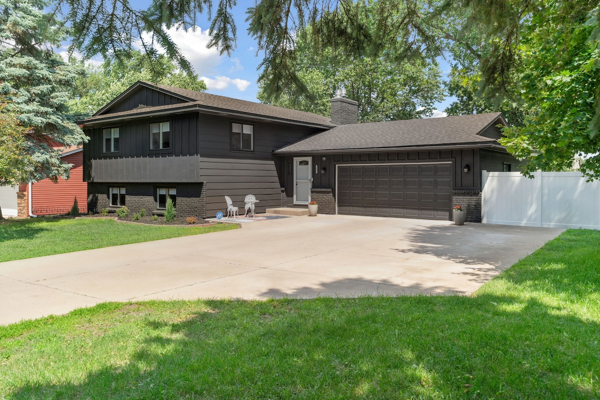 Відпочиньте та насолоджуйтеся цим вишуканим однорівневим будинком для однієї сім’ї! Це надзвичайно зручне для сімей помешкання з 1 головною спальнею, 2 додатковими спальнями, окремою ванною кімнатою з душем та туалетом і повноцінною ванною кімнатою. У цьому помешканні є затишна велика кімната з каміном, їдальня, повністю обладнана кухня та відкритий задній двір для веселих зустрічей. У ньому є гараж на 2 автомобілі, і він розташований поруч із багатьма ресторанами, магазинами та розважальними закладами. Це приблизно за 21,4 милі від центру Міннеаполіса. Ми будемо дуже раді, якщо ви з нами!