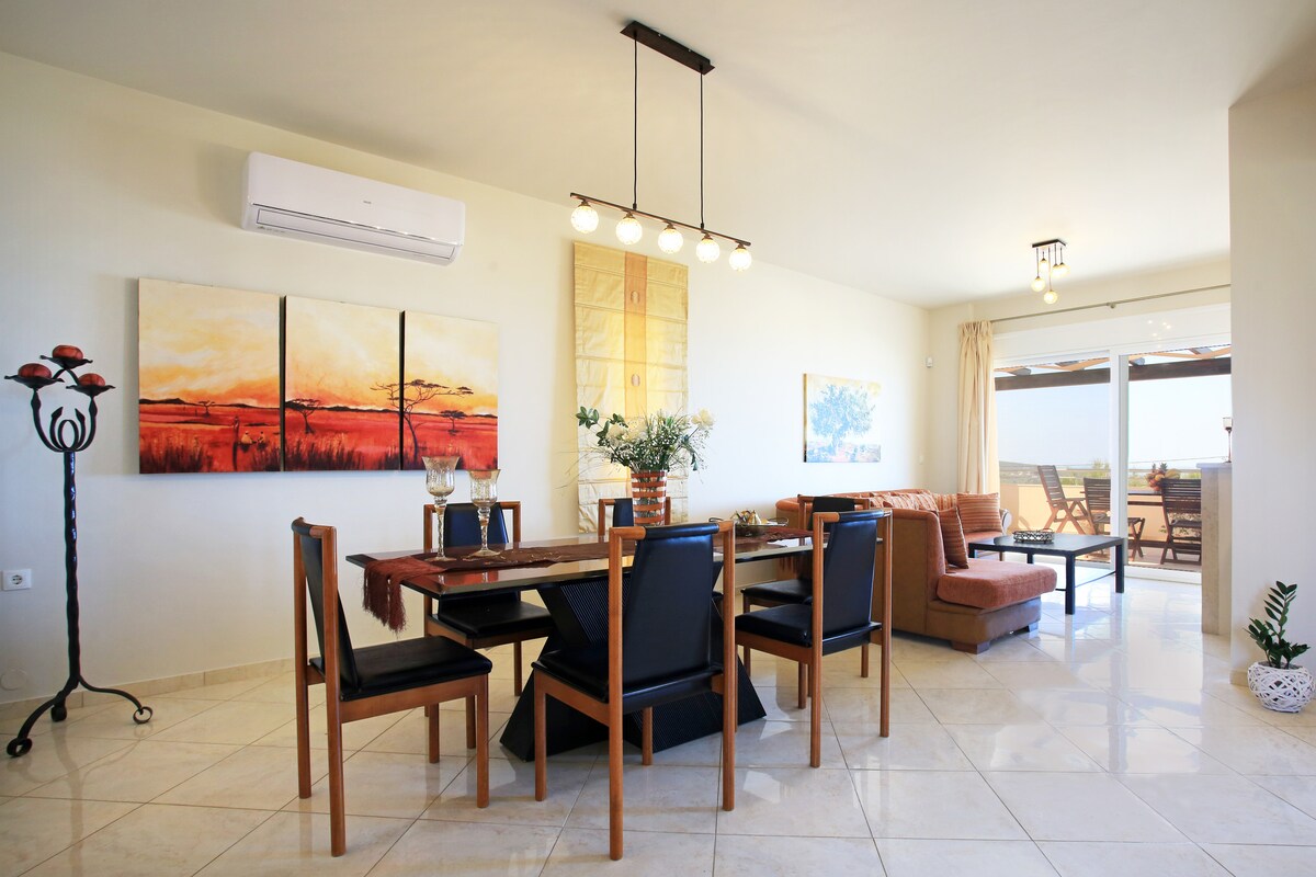 Окрема вілла площею 125 м², яка може розмістити до 8 гостей, з 3 спальнями, кожна з яких має власну ванну кімнату. Приватний басейн із підігрівом у низький сезон, з видом на море та гори. Розташований за 10 хвилин від аеропорту Іракліона, за 2 км від Коккіні-Хані та за 10 км від Херсоніссоса. До вартості проживання входять трансфери з аеропорту на віллу та назад. Додаткові послуги: доставка їжі, прокат автомобілів, організація екскурсій. Ласкаво просимо тихі групи. Стійка реєстрації працює з 08:00 до опівночі.