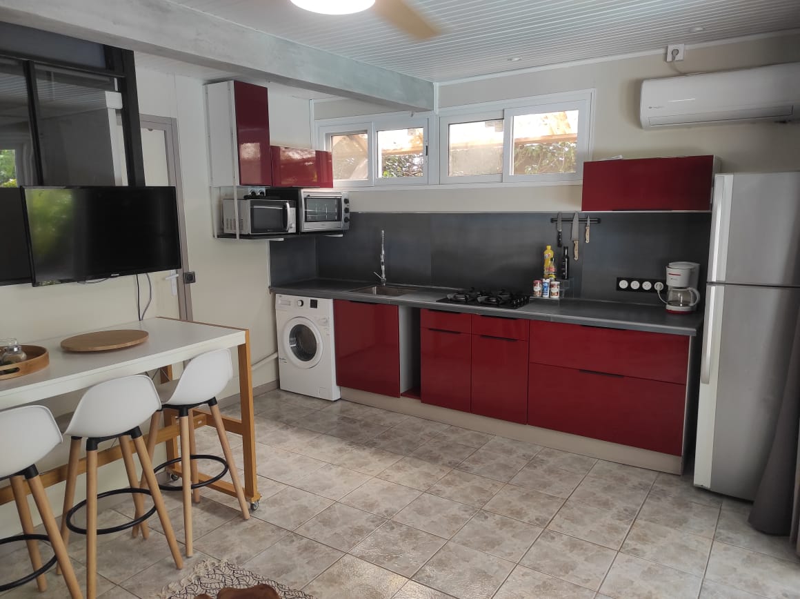 Карибська вілла площею 110 м² та тераси площею 80 м² розташована на схилі пагорба в безпосередній близькості від лісу, що межує з пляжами. Унікальний досвід для відпочинку: надзвичайний вид, близькість до пляжів, походи до місць для серфінгу Caravelle та Tartane (усе в межах 2- або 5 хвилин ходьби), приватний басейн і ландшафтний сад з фруктовими деревами та квітами.