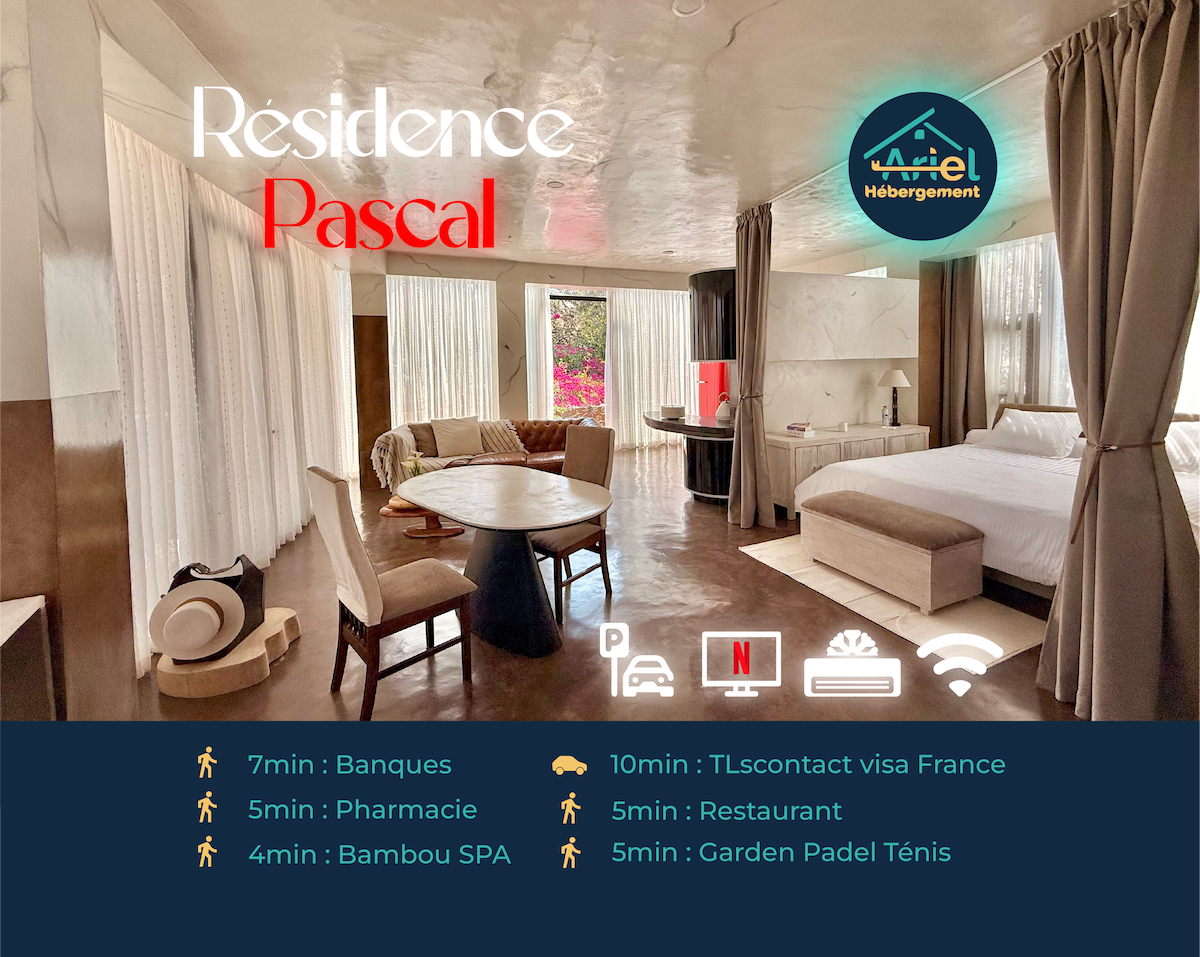 Це сучасне, спокійне та безпечне помешкання забезпечує приємне перебування, незалежно від того, чи ви перебуваєте з сім 'єю, друзями, закоханими, колегами. Ви можете милуватися своїми великими скляними вікнами красивими пальмами та іншими зеленими рослинами, які, без сумніву, будуть радістю ваших очей. Гідромасажна ванна дозволить відпочити. Велика сучасна та повністю обладнана кухня буде у вашому розпорядженні, якщо ви захочете приготувати хороші страви.