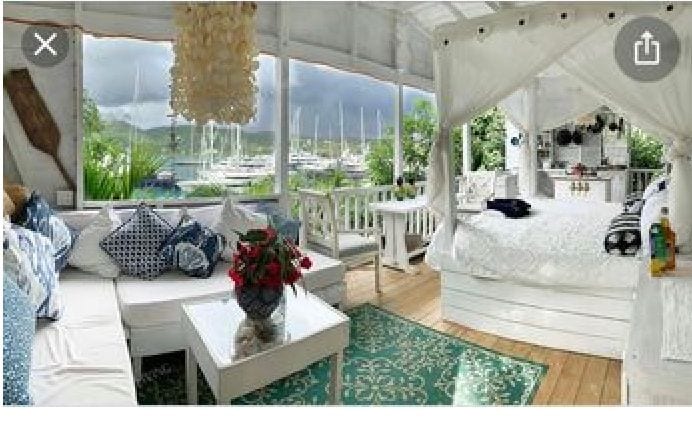 Окремий котедж, розташований у закритому помешканні Pineapple House з двоспальним ліжком King size з видом на яхт-клуб Antigua Yacht Club & Superyacht Marina. Повністю обладнана кухня з холодильником, плитою та кухонною раковиною у відкритому місці з птахами, банановими деревами та москітною сіткою. У ньому є спільна ванна кімната з душем неподалік з гостями хостелу. Ця кімната абсолютно чудова, з вітальнею з красивими тканинами та кухнею, де можна готувати їжу. Розташована неподалік від пляжу Піджен-Біч і вишуканої їжі Cloggies.
