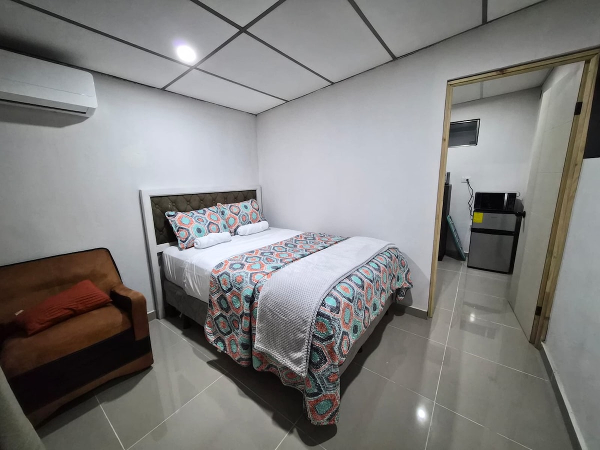 Насолоджуйтеся його дизайном з достатнім простором і перебуванням у місті Apartamento- Estudio en Primer Nivel Сучасна та комфортна повністю обладнана приватна квартира недалеко від площі Мерліот, шкіл, супермаркетів і аптек У квартирі є кухня, пральня, повна ванна кімната, сад (з видом на місто) та власний вхід. Тут є парковка на 1 транспортний засіб (парковка на ліфті)