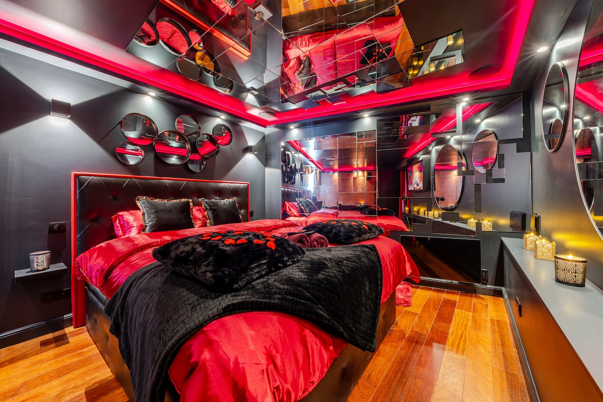 Ласкаво просимо до La CASALOVA – розкішного оазису з унікальним дизайном, домашнім кінотеатром, величезним екраном, круглим ліжком king-size, вишуканою мармуровою кухнею та ванною кімнатою зі спа-зонами, джакузі на двох осіб і душовою кабіною. Тепла атмосфера, шикарний декор рослин та преміальні послуги. Відмінно підходить для романтичного перебування або відпочинку. Дозвольте собі спокусити враження Казаловою для незабутніх моментів відпочинку в центрі теплої та елегантної обстановки.