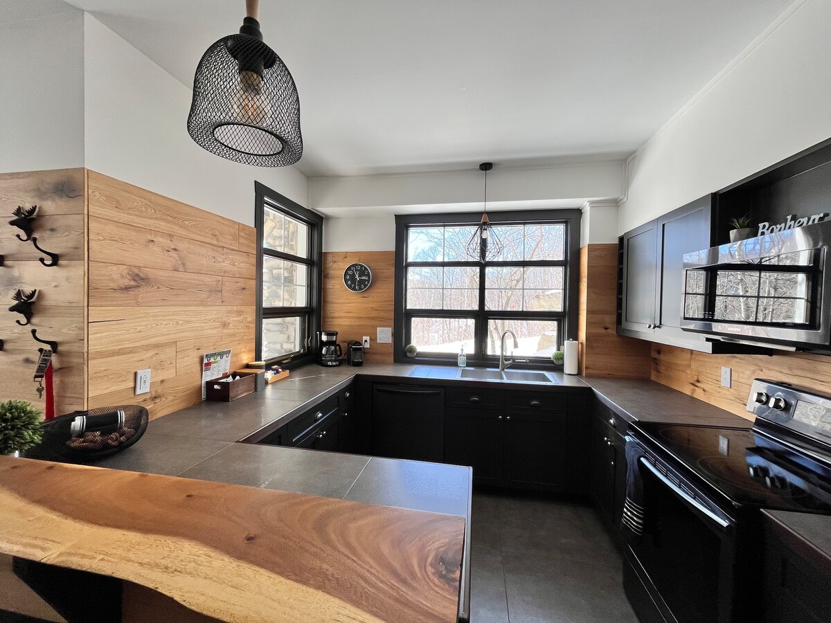 Насолодіться відпочинком у кондомініумі для катання на лижах «від порога», розташованому безпосередньо біля підніжжя гори, недалеко від гондол, пішохідного села Тремблан, лижних пагорбів, озера, стежок. Чудове місце для активного відпочинку в горах і на озері: походи, велосипеди, гольф, зиплайнінг, пляж, казино та спа. Кондомініум для некурців розрахований на 4 спальних місця. Ліжко Queen size в головній спальні та лофт з 2 односпальними ліжками. Насолодіться великою терасою з чітким видом на гору та село. Безкоштовне паркування, Wi-Fi, зарядні пристрої для електромобілів і Netflix